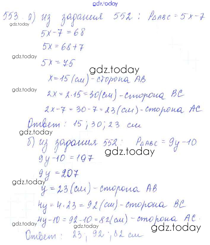 Ответы к Решение к упражнениям 553 Учебнику по Математике для 5 класса Зубарева, Мордкович Мнемозина 2015