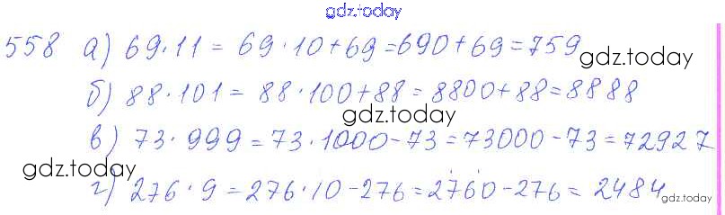 Ответы к Решение к упражнениям 558 Учебнику по Математике для 5 класса Зубарева, Мордкович Мнемозина 2015