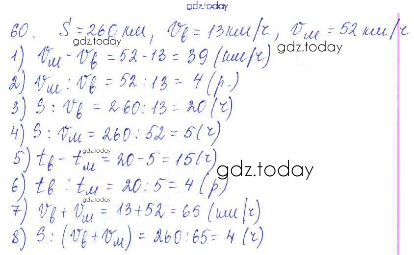 Ответы к Решение к упражнениям 60 Учебнику по Математике для 5 класса Зубарева, Мордкович Мнемозина 2015