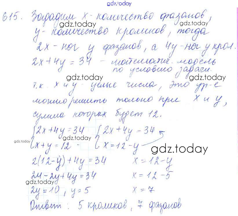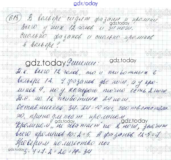 Ответы к Решение к упражнениям 615 Учебнику по Математике для 5 класса Зубарева, Мордкович Мнемозина 2015