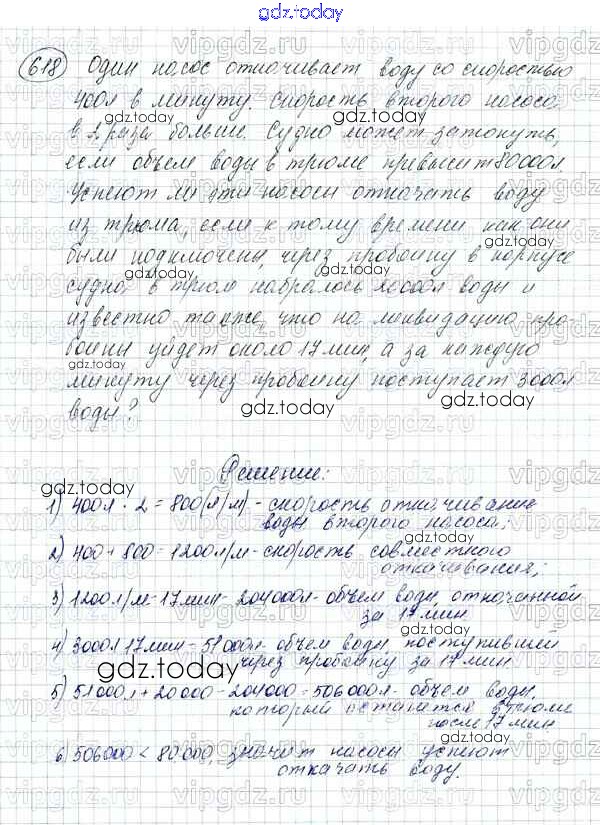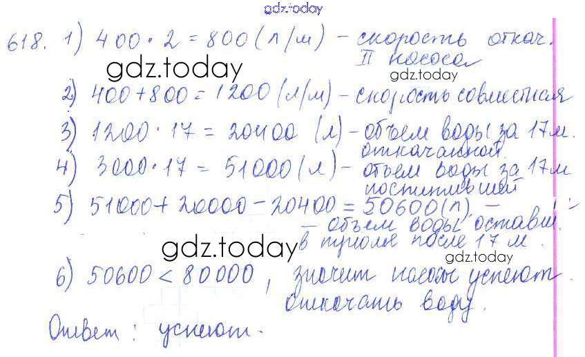 Ответы к Решение к упражнениям 618 Учебнику по Математике для 5 класса Зубарева, Мордкович Мнемозина 2015