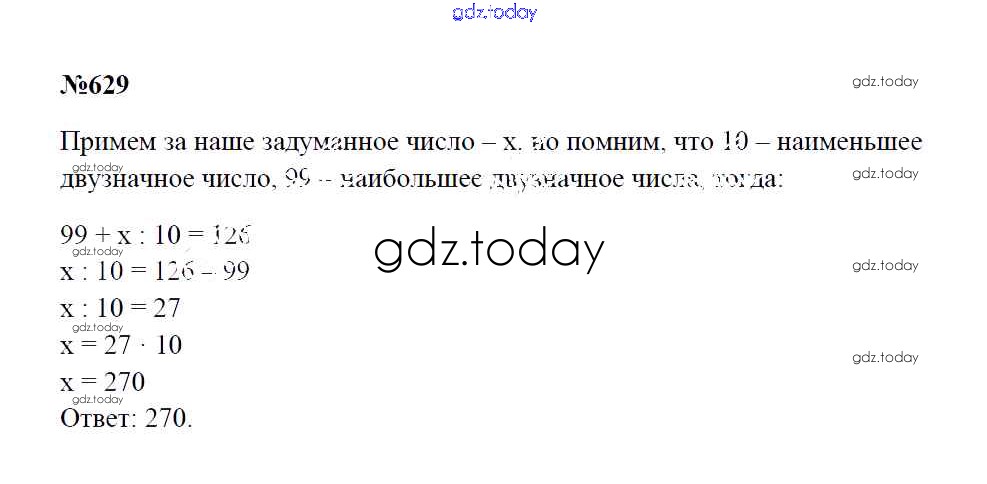 Ответы к Решение к упражнениям 629 Учебнику по Математике для 5 класса Зубарева, Мордкович Мнемозина 2015