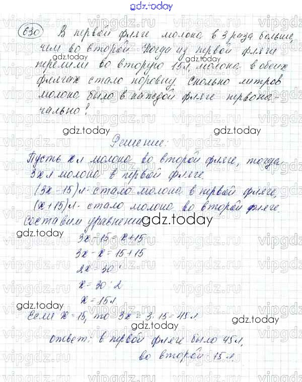 Ответы к Решение к упражнениям 630 Учебнику по Математике для 5 класса Зубарева, Мордкович Мнемозина 2015