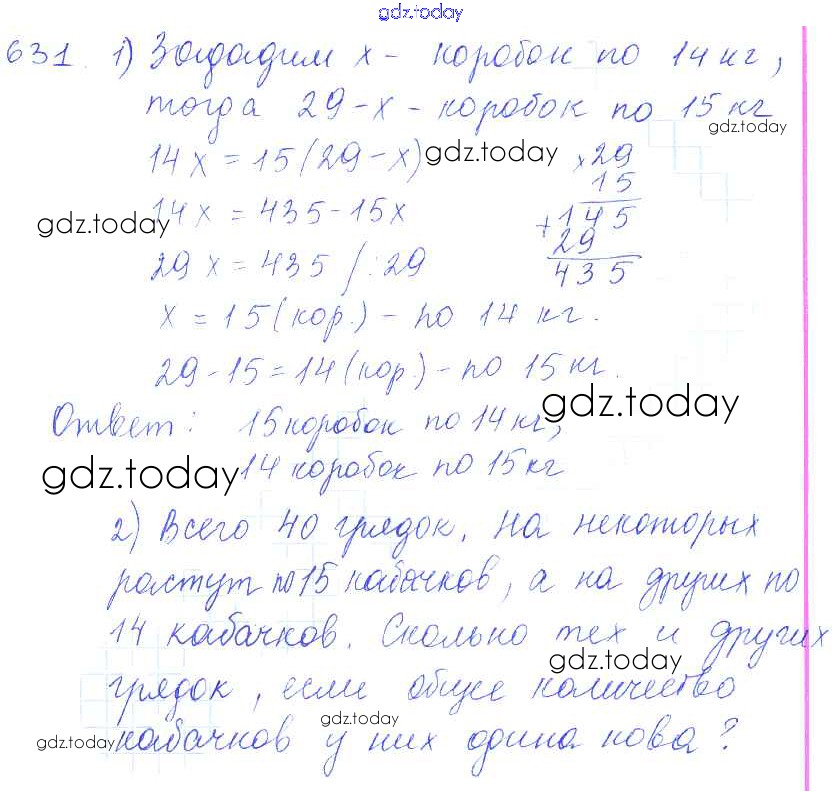 Ответы к Решение к упражнениям 631 Учебнику по Математике для 5 класса Зубарева, Мордкович Мнемозина 2015