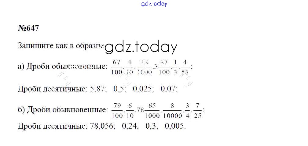На страницах сайта gdz.today вы найдете учебный и вспомогательный материал, направленный на улучшения знаний школьной программы. ГДЗ - онлайн мир знаний Решение к упражнениям 647 Учебнику по Математике для 5 класса Зубарева, Мордкович Мнемозина 2015