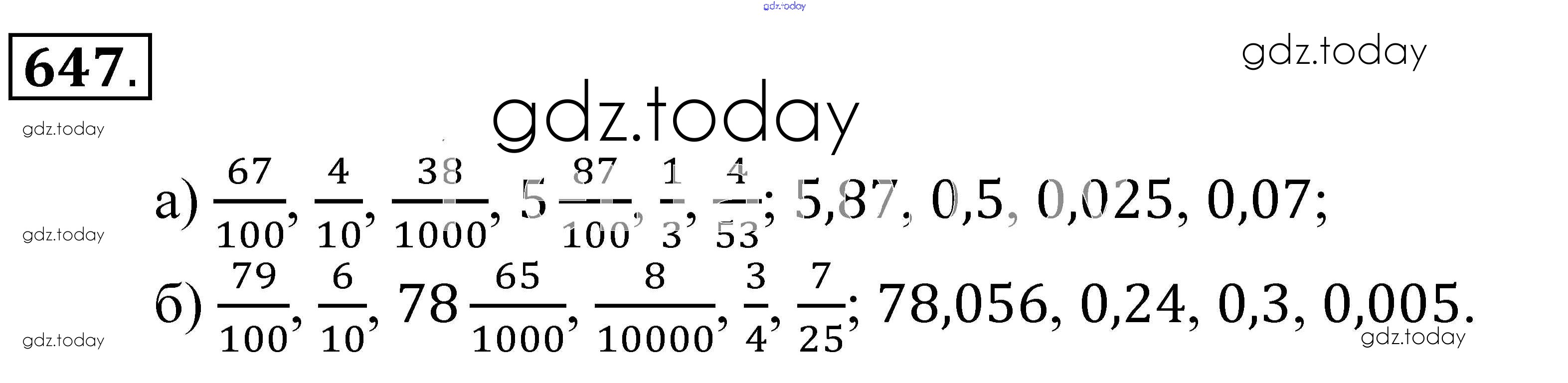 Ответы к Решение к упражнениям 647 Учебнику по Математике для 5 класса Зубарева, Мордкович Мнемозина 2015