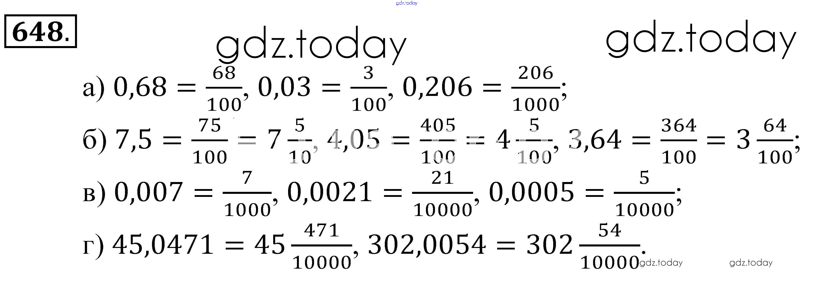 Ответы к Решение к упражнениям 648 Учебнику по Математике для 5 класса Зубарева, Мордкович Мнемозина 2015