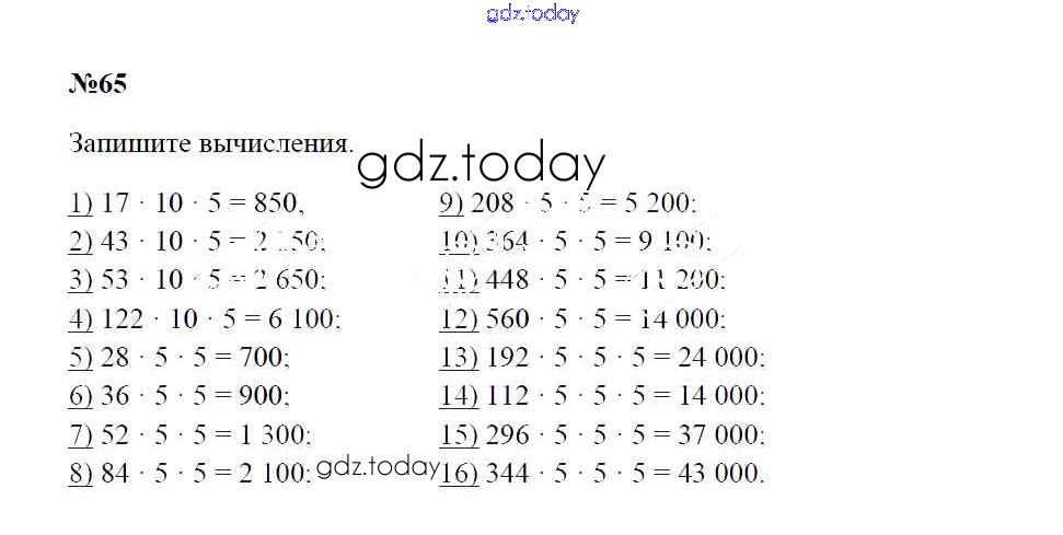На страницах сайта gdz.today вы найдете учебный и вспомогательный материал, направленный на улучшения знаний школьной программы. ГДЗ - онлайн мир знаний Решение к упражнениям 65 Учебнику по Математике для 5 класса Зубарева, Мордкович Мнемозина 2015