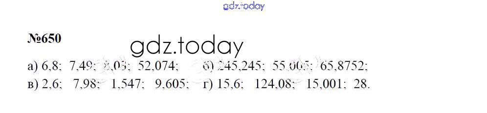 На страницах сайта gdz.today вы найдете учебный и вспомогательный материал, направленный на улучшения знаний школьной программы. ГДЗ - онлайн мир знаний Решение к упражнениям 650 Учебнику по Математике для 5 класса Зубарева, Мордкович Мнемозина 2015
