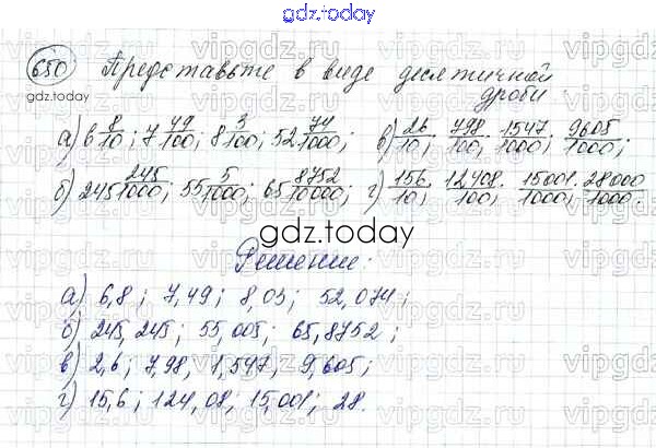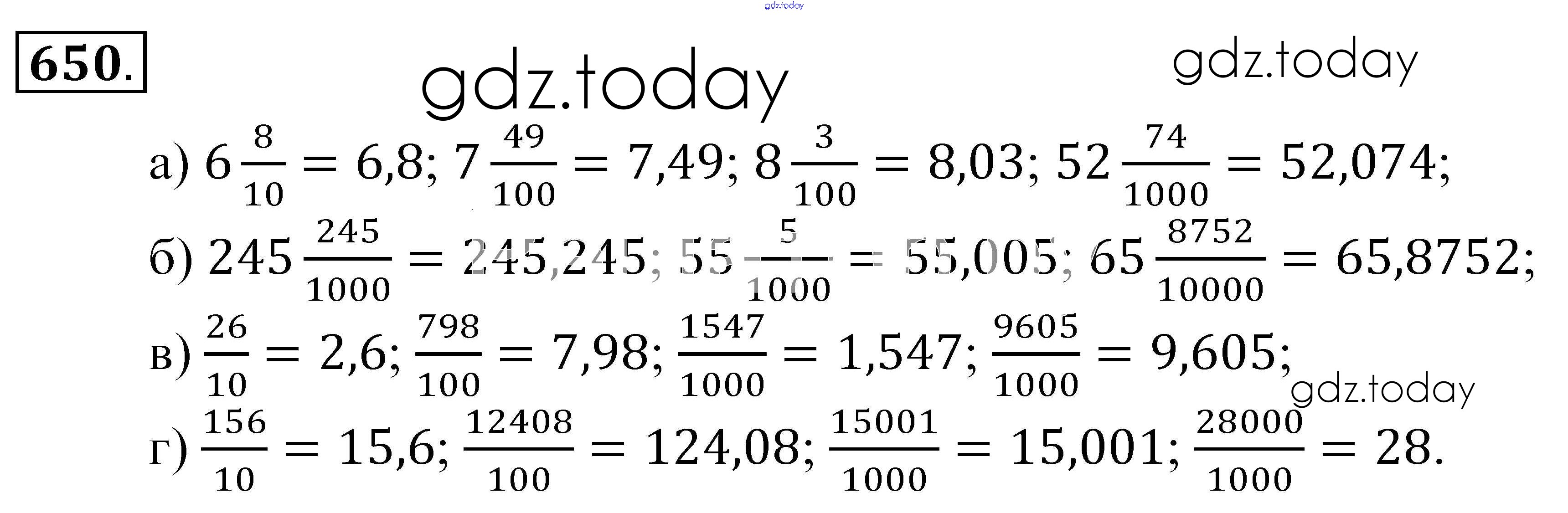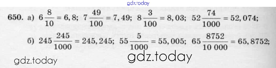 Ответы к Решение к упражнениям 650 Учебнику по Математике для 5 класса Зубарева, Мордкович Мнемозина 2015