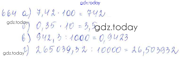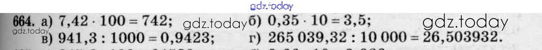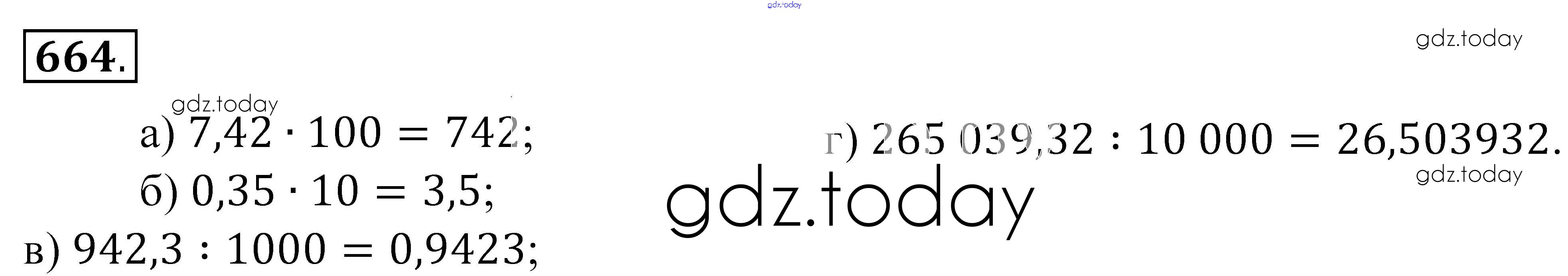 Ответы к Решение к упражнениям 664 Учебнику по Математике для 5 класса Зубарева, Мордкович Мнемозина 2015