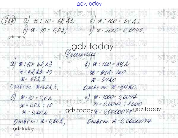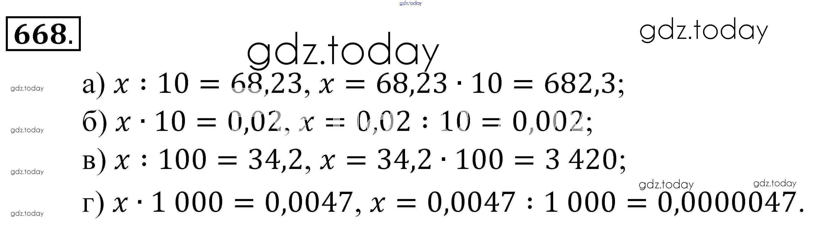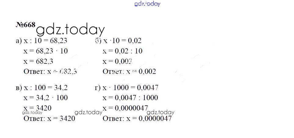 Ответы к Решение к упражнениям 668 Учебнику по Математике для 5 класса Зубарева, Мордкович Мнемозина 2015