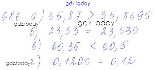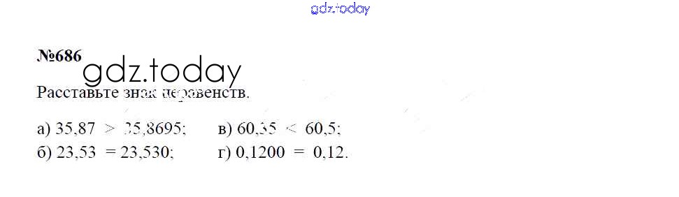 Ответы к Решение к упражнениям 686 Учебнику по Математике для 5 класса Зубарева, Мордкович Мнемозина 2015