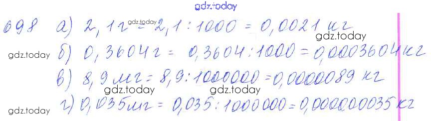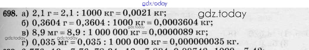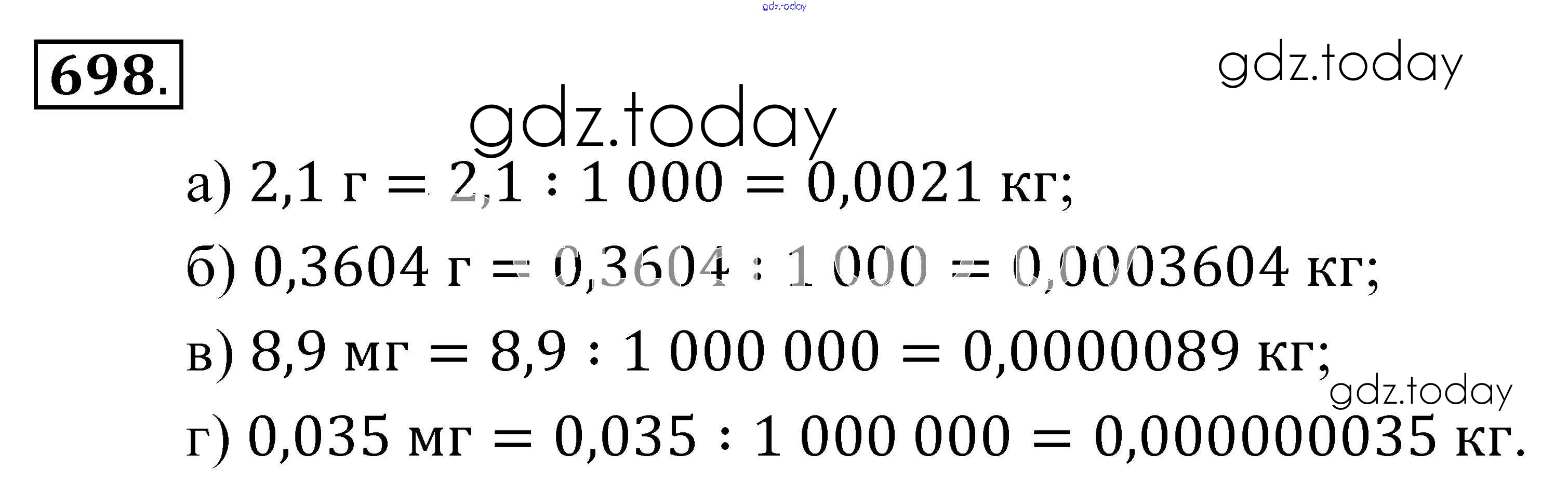 Ответы к Решение к упражнениям 698 Учебнику по Математике для 5 класса Зубарева, Мордкович Мнемозина 2015