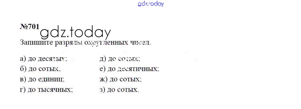 На страницах сайта gdz.today вы найдете учебный и вспомогательный материал, направленный на улучшения знаний школьной программы. ГДЗ - онлайн мир знаний Решение к упражнениям 701 Учебнику по Математике для 5 класса Зубарева, Мордкович Мнемозина 2015