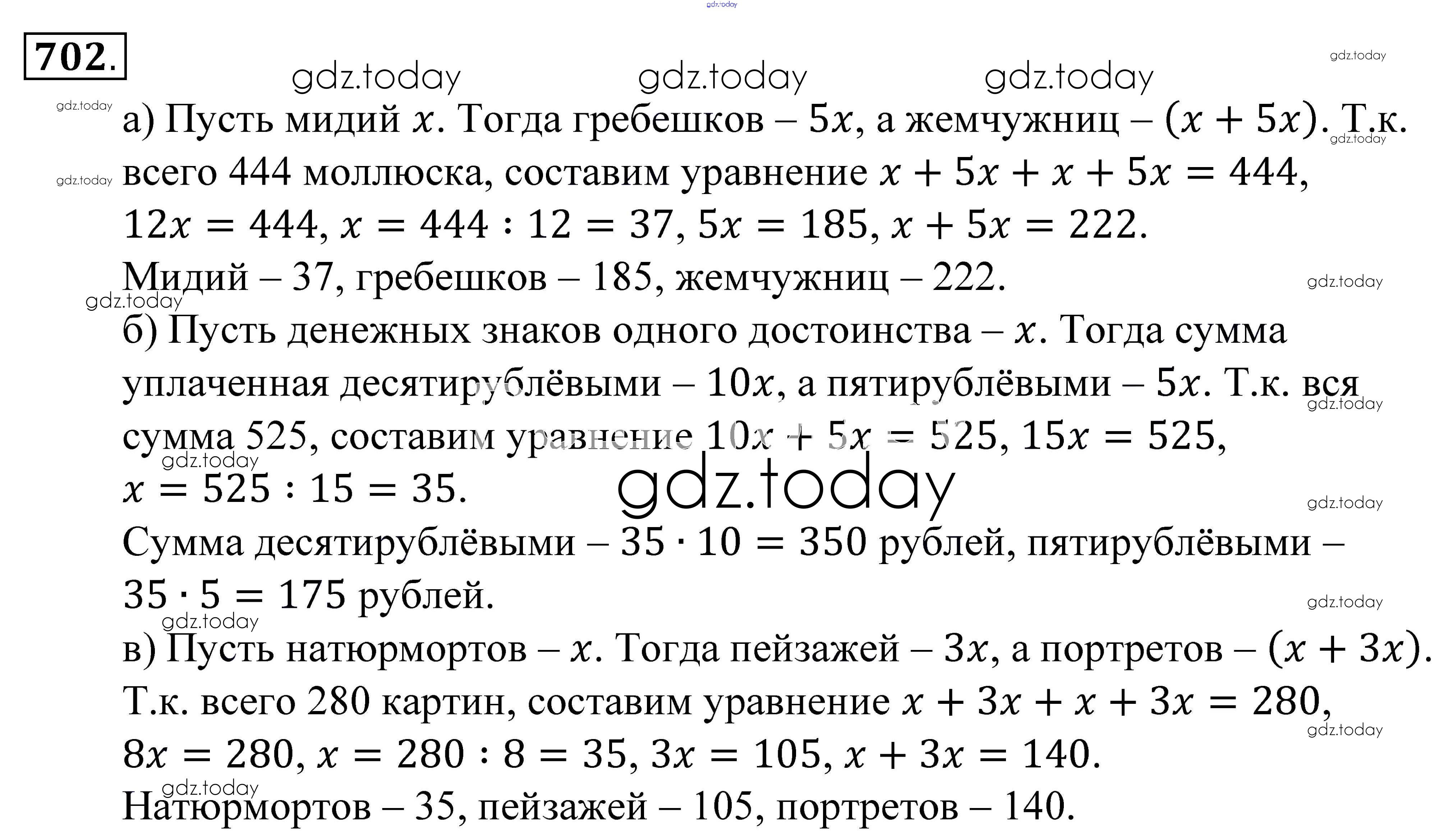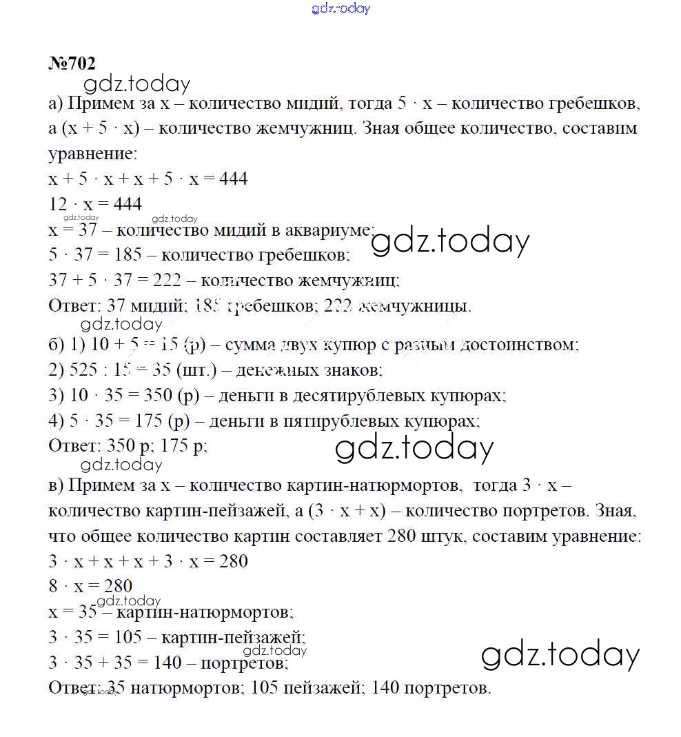 Ответы к Решение к упражнениям 702 Учебнику по Математике для 5 класса Зубарева, Мордкович Мнемозина 2015