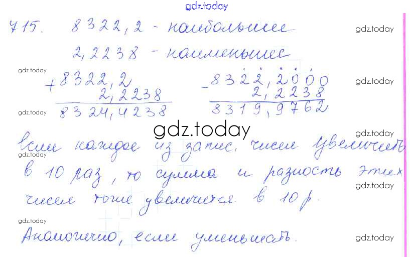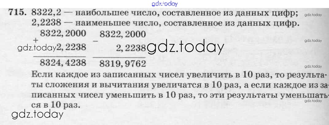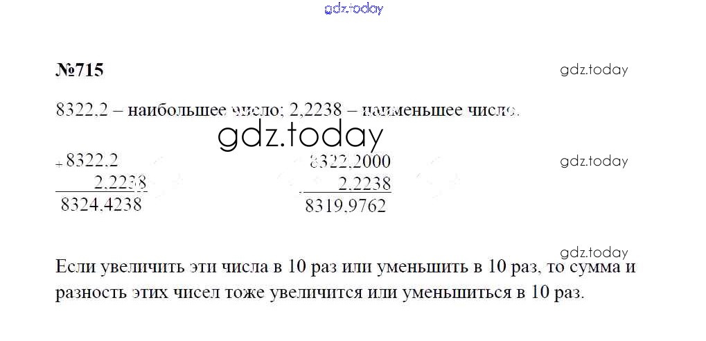 Ответы к Решение к упражнениям 715 Учебнику по Математике для 5 класса Зубарева, Мордкович Мнемозина 2015