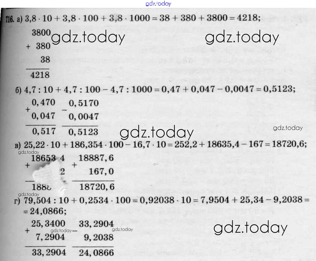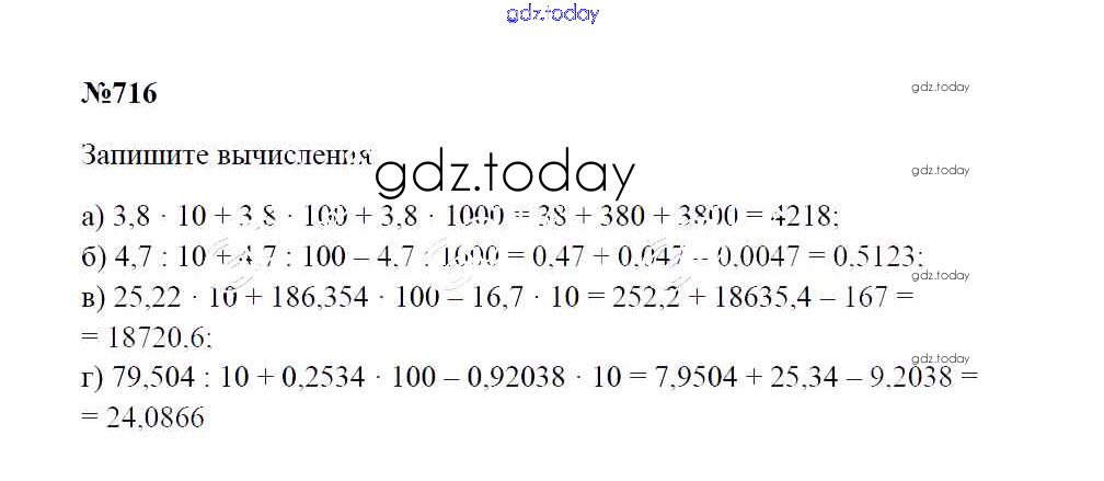 Ответы к Решение к упражнениям 716 Учебнику по Математике для 5 класса Зубарева, Мордкович Мнемозина 2015