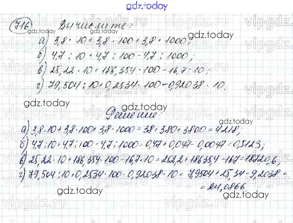 На страницах сайта gdz.today вы найдете учебный и вспомогательный материал, направленный на улучшения знаний школьной программы. ГДЗ - онлайн мир знаний Решение к упражнениям 716 Учебнику по Математике для 5 класса Зубарева, Мордкович Мнемозина 2015