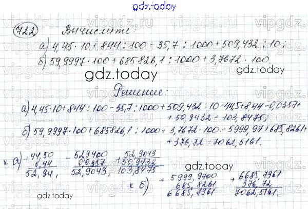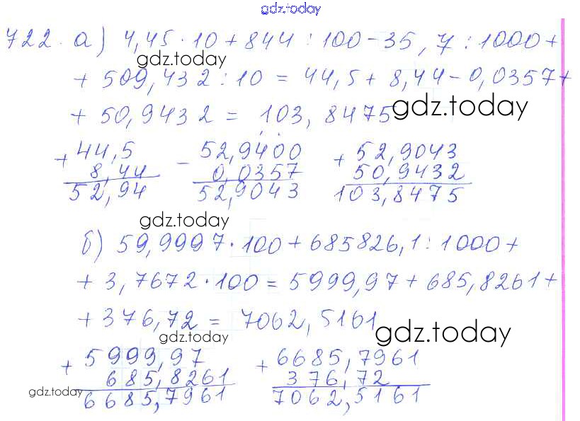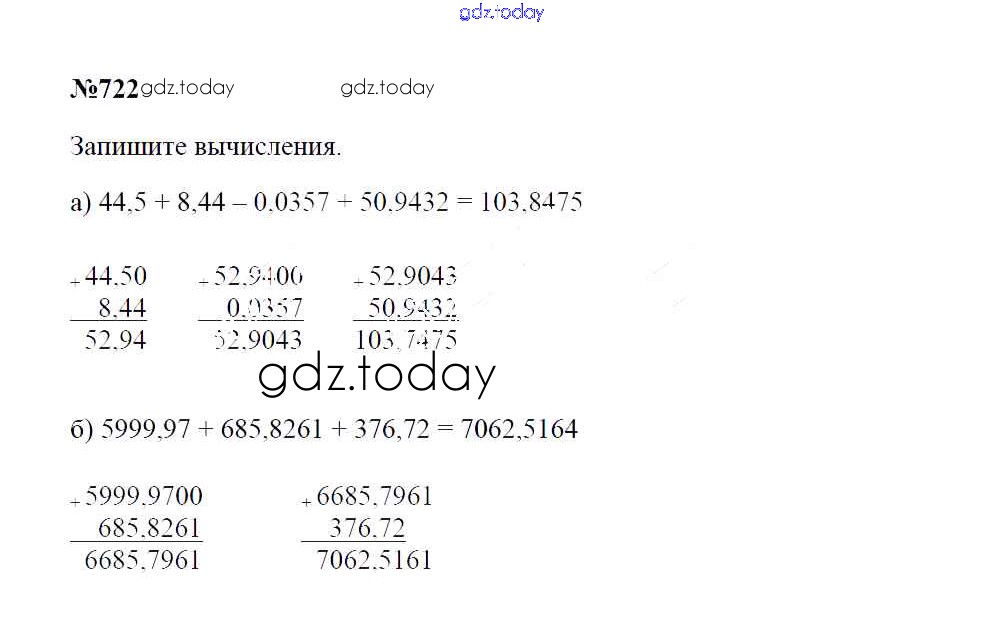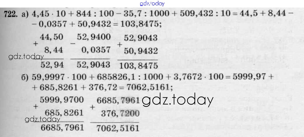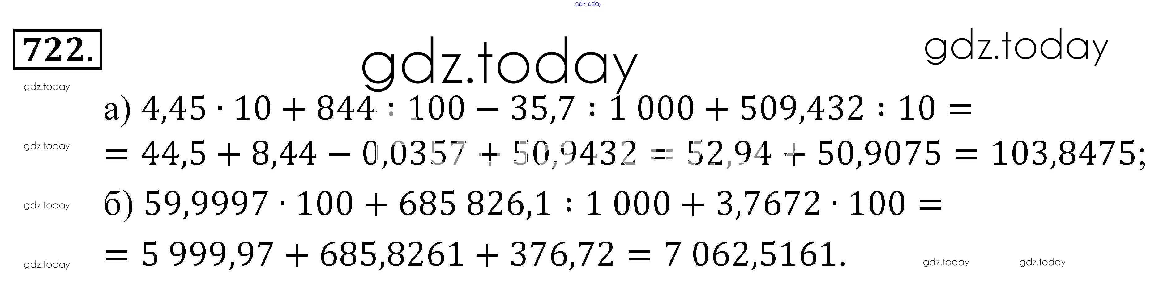 Ответы к Решение к упражнениям 722 Учебнику по Математике для 5 класса Зубарева, Мордкович Мнемозина 2015