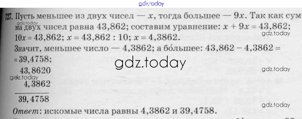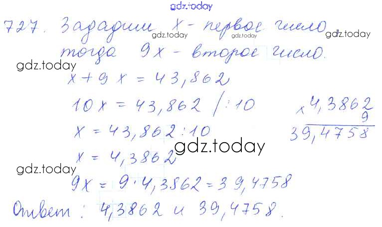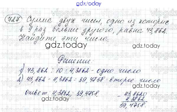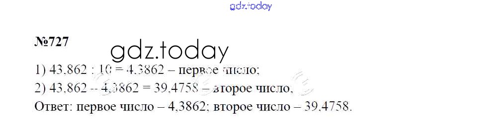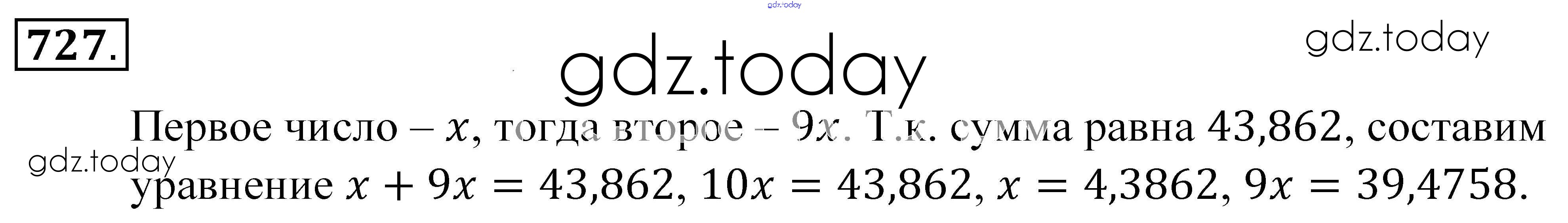 Ответы к Решение к упражнениям 727 Учебнику по Математике для 5 класса Зубарева, Мордкович Мнемозина 2015
