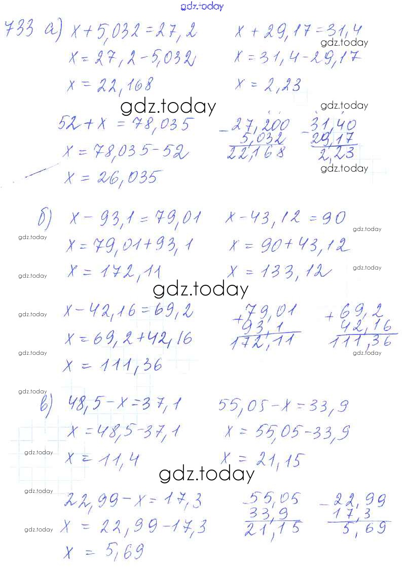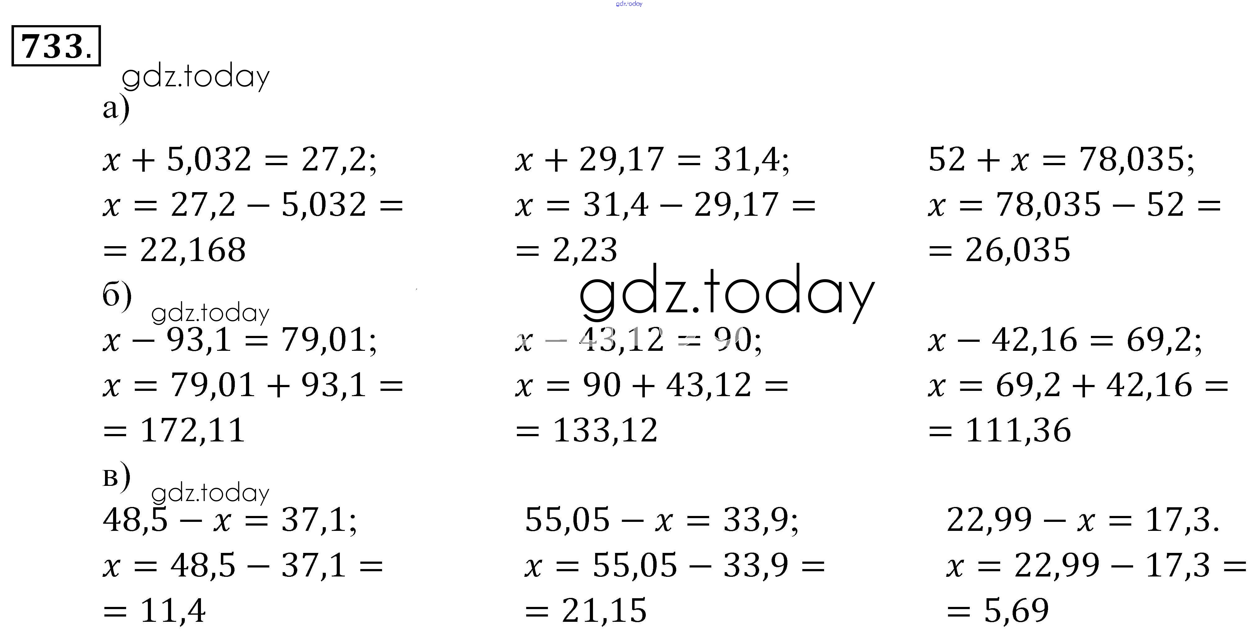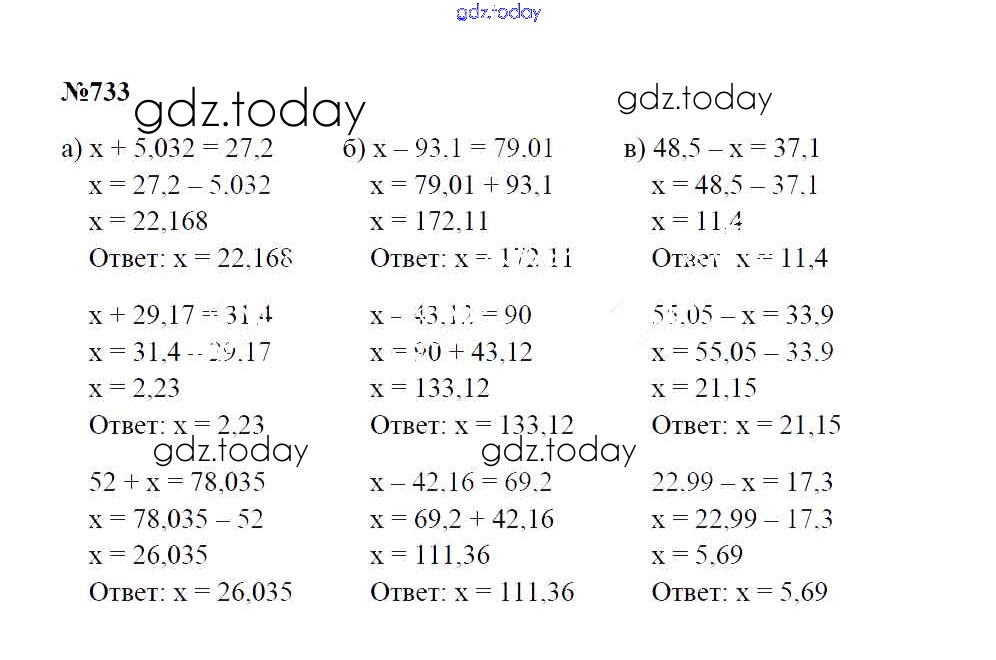 Ответы к Решение к упражнениям 733 Учебнику по Математике для 5 класса Зубарева, Мордкович Мнемозина 2015