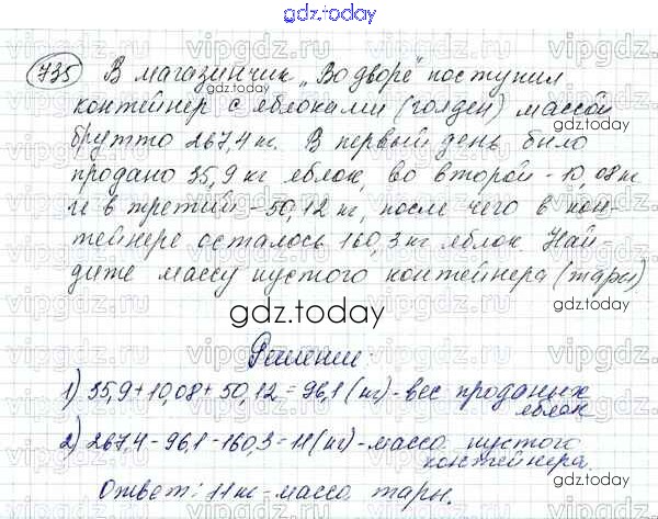 Ответы к Решение к упражнениям 735 Учебнику по Математике для 5 класса Зубарева, Мордкович Мнемозина 2015