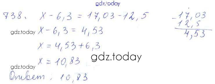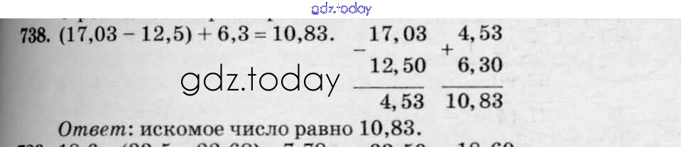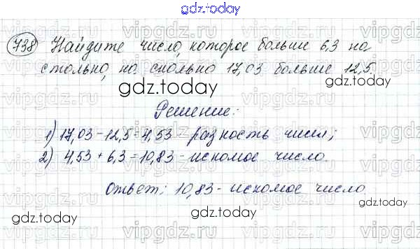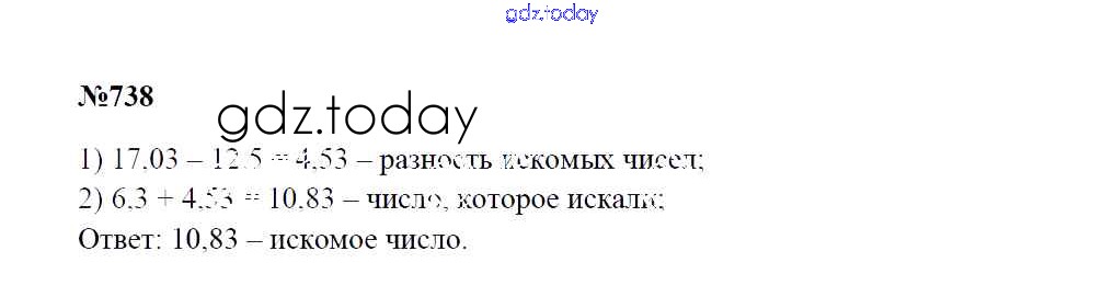 Ответы к Решение к упражнениям 738 Учебнику по Математике для 5 класса Зубарева, Мордкович Мнемозина 2015