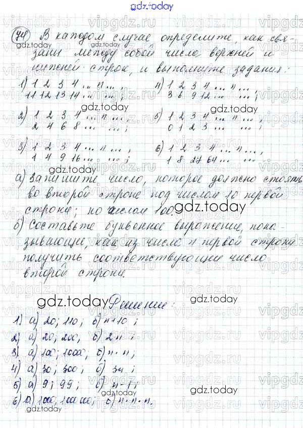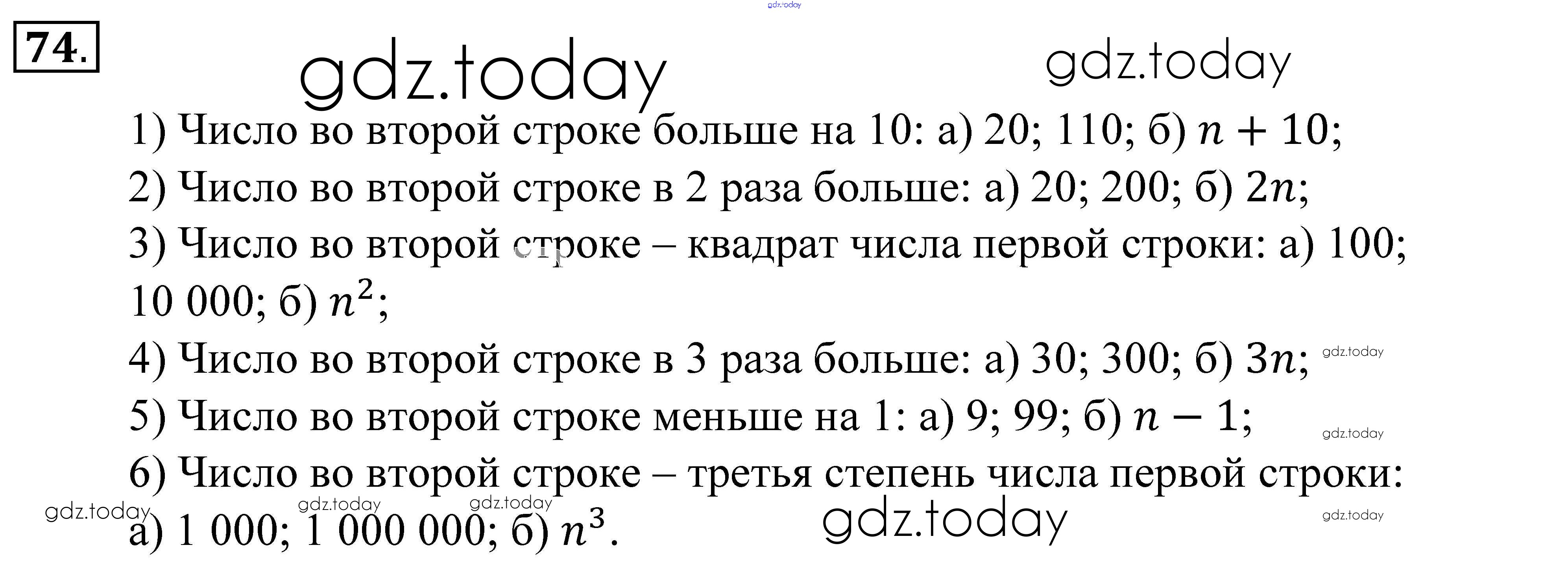 Ответы к Решение к упражнениям 74 Учебнику по Математике для 5 класса Зубарева, Мордкович Мнемозина 2015