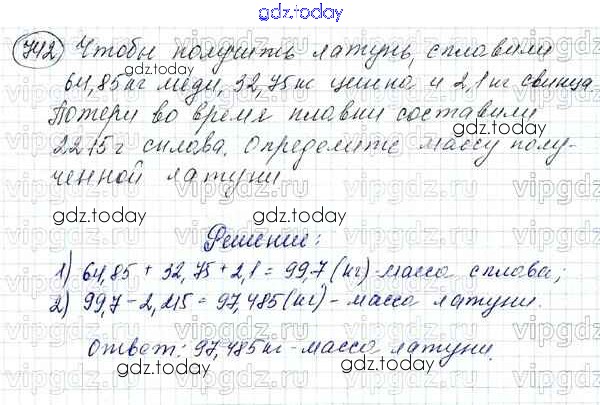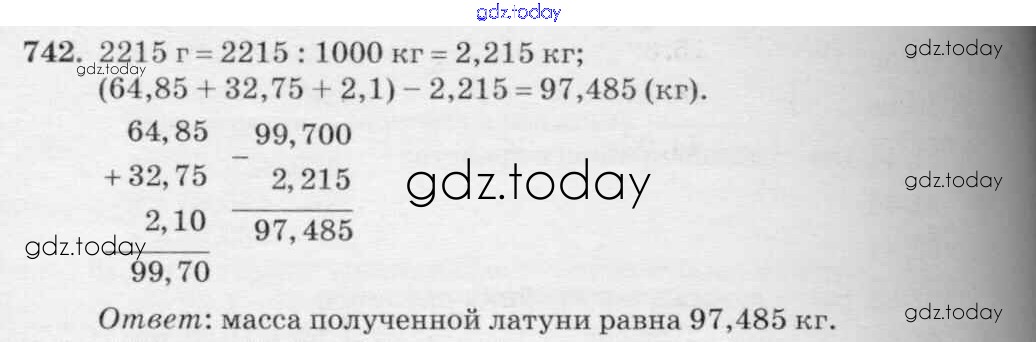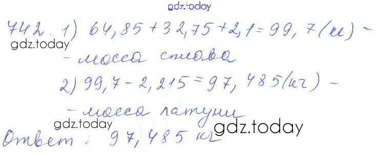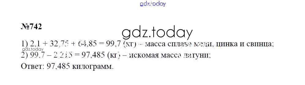 Ответы к Решение к упражнениям 742 Учебнику по Математике для 5 класса Зубарева, Мордкович Мнемозина 2015
