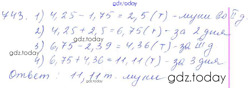 Ответы к Решение к упражнениям 743 Учебнику по Математике для 5 класса Зубарева, Мордкович Мнемозина 2015