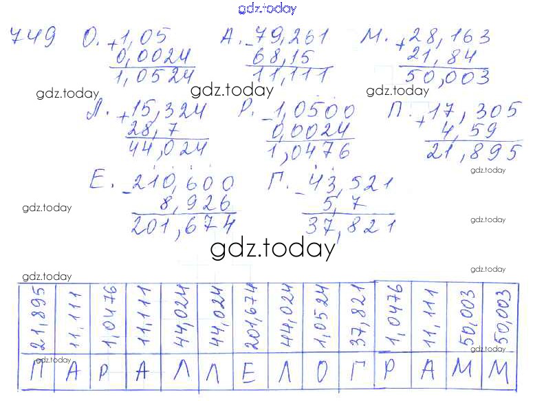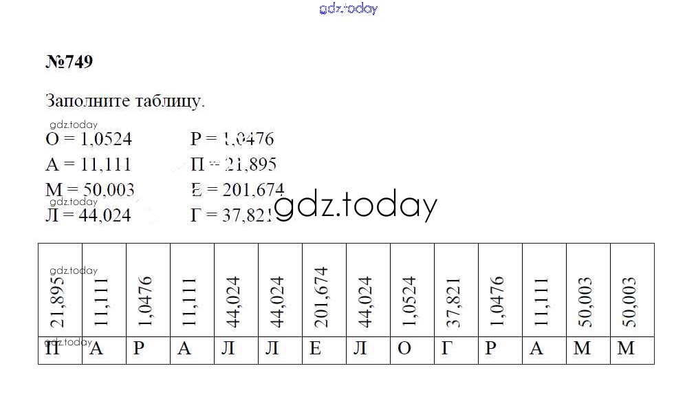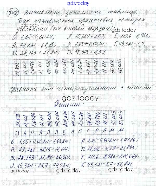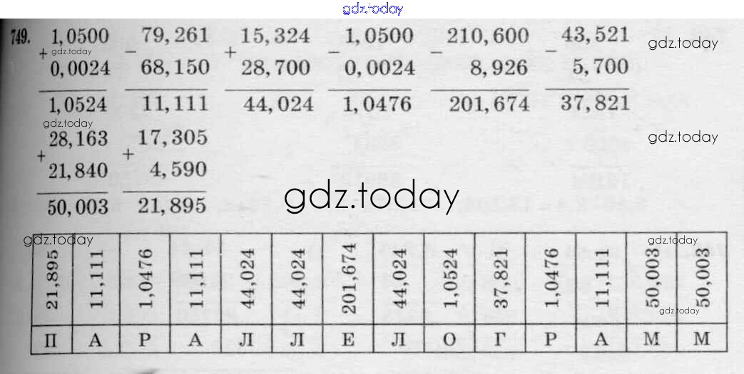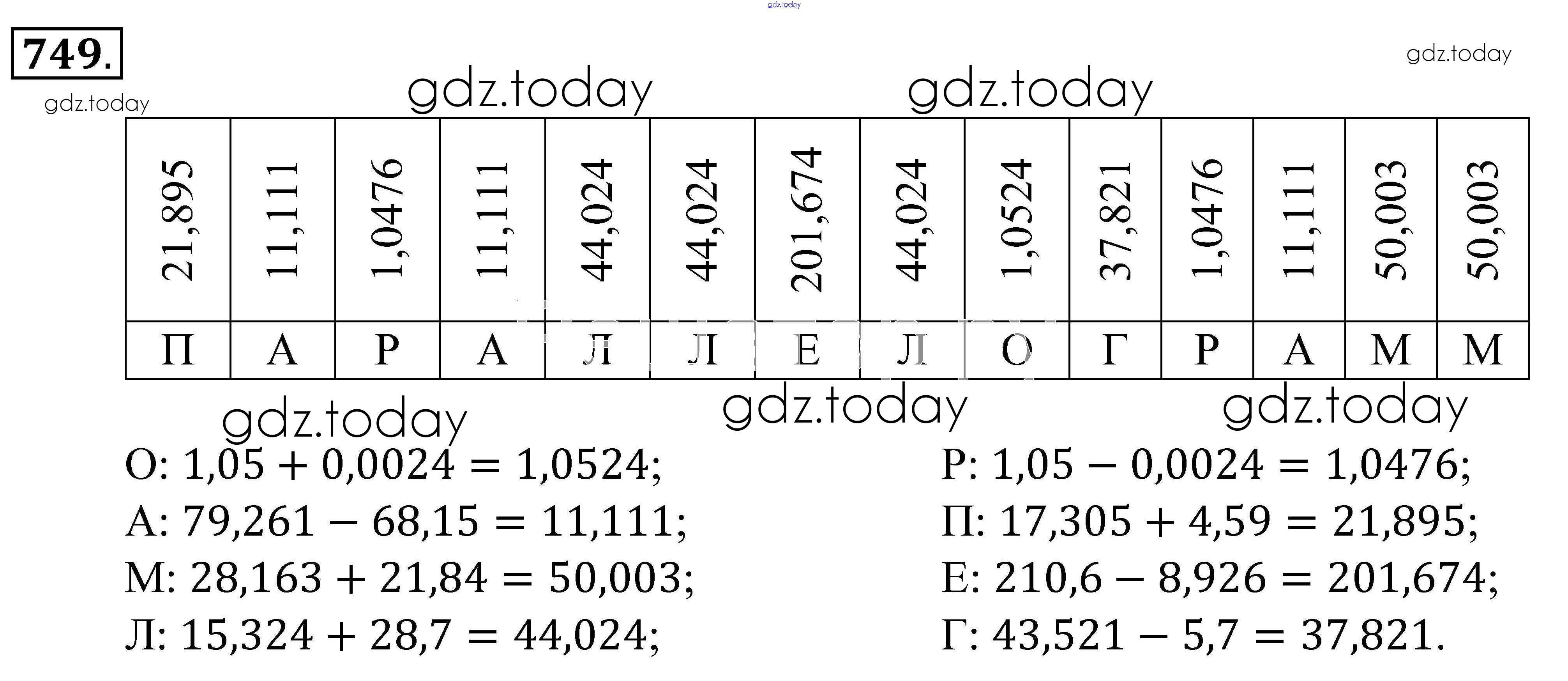 Ответы к Решение к упражнениям 749 Учебнику по Математике для 5 класса Зубарева, Мордкович Мнемозина 2015