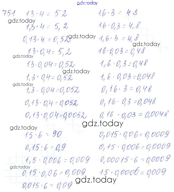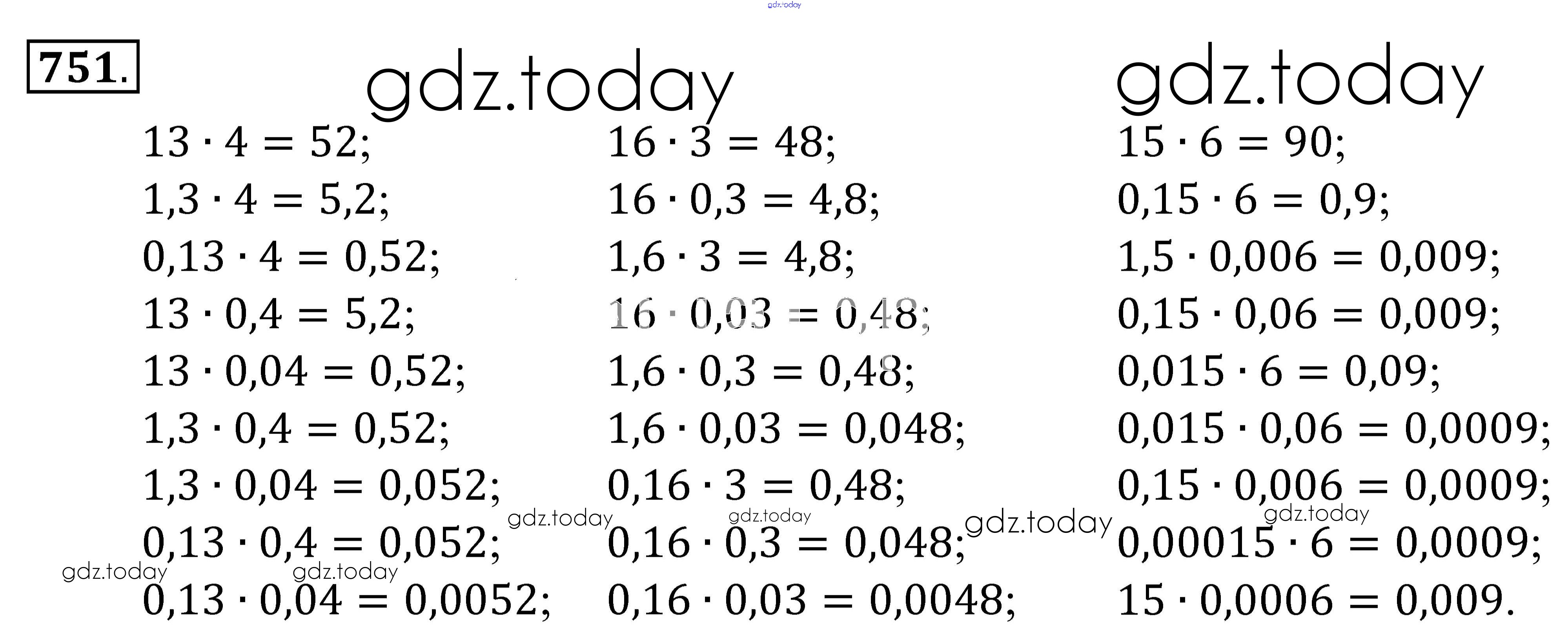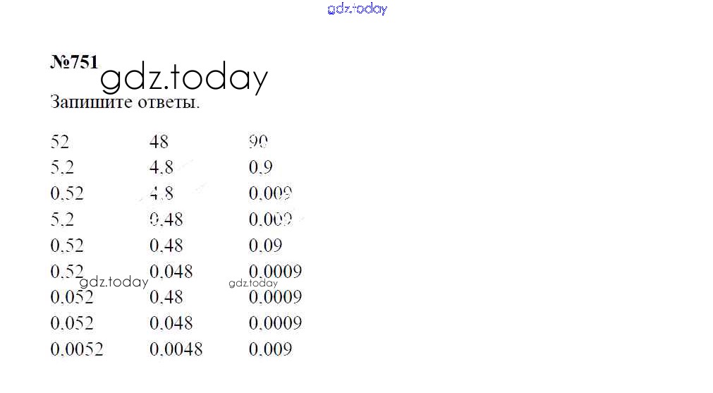 Ответы к Решение к упражнениям 751 Учебнику по Математике для 5 класса Зубарева, Мордкович Мнемозина 2015