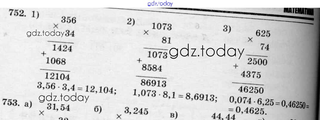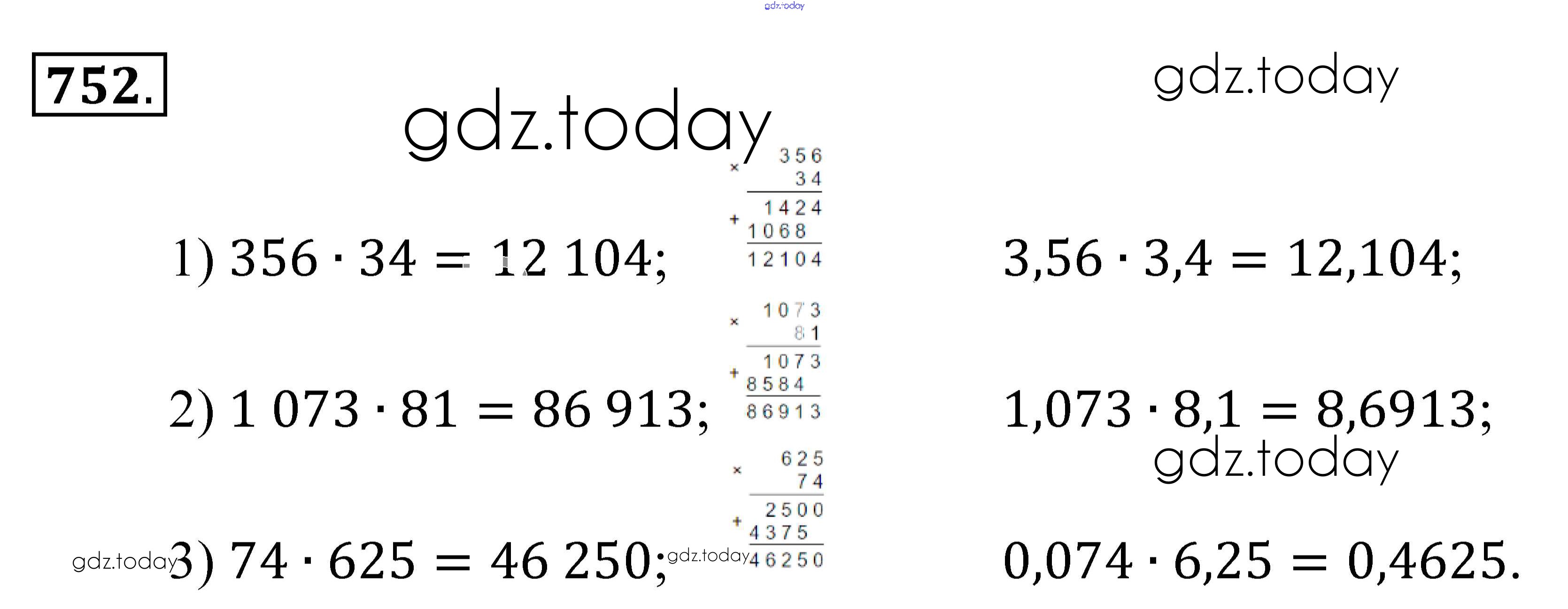 Ответы к Решение к упражнениям 752 Учебнику по Математике для 5 класса Зубарева, Мордкович Мнемозина 2015