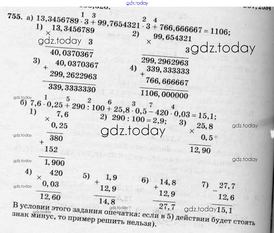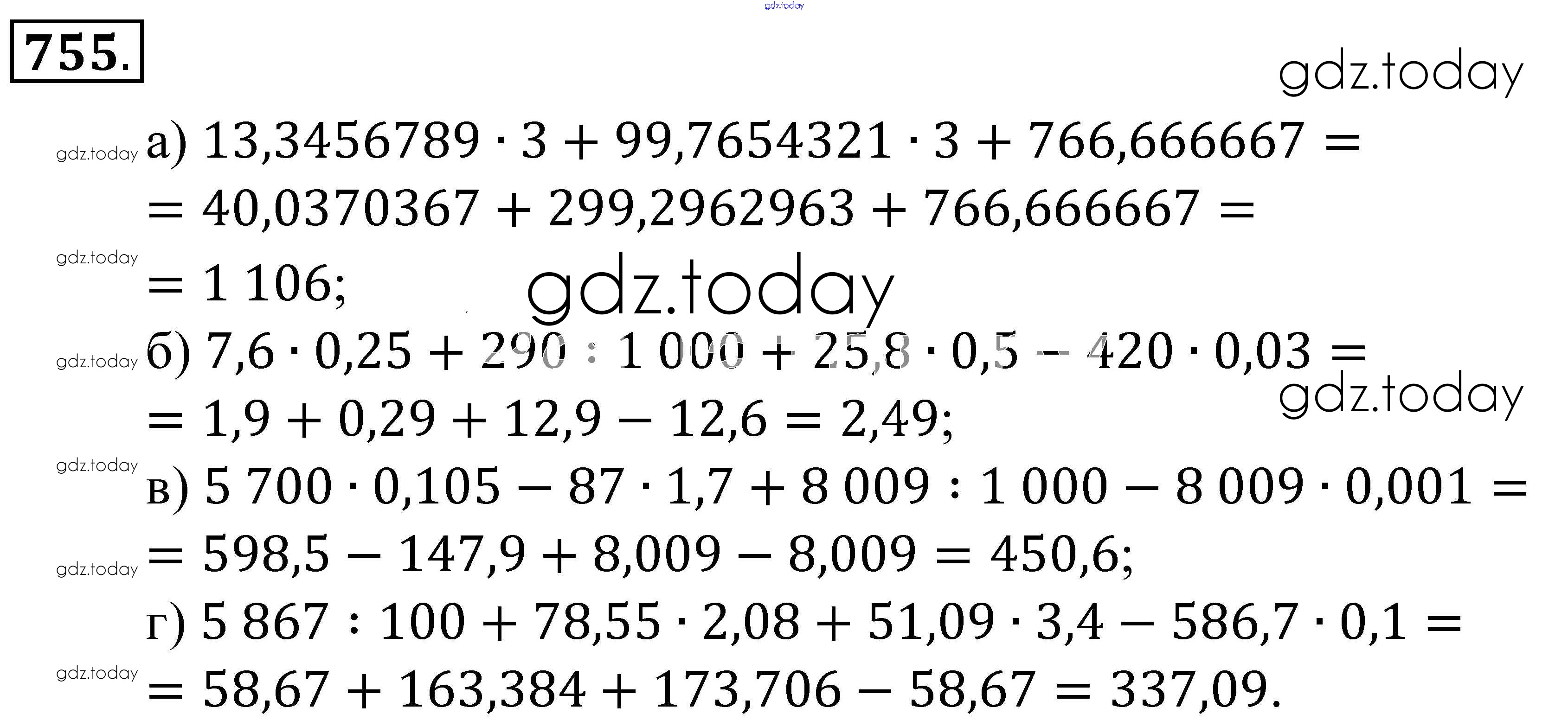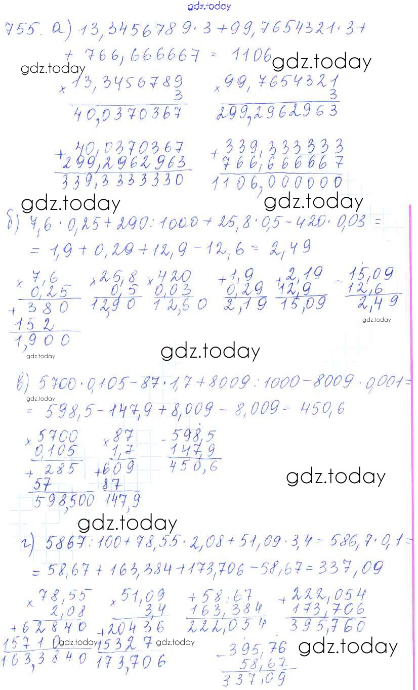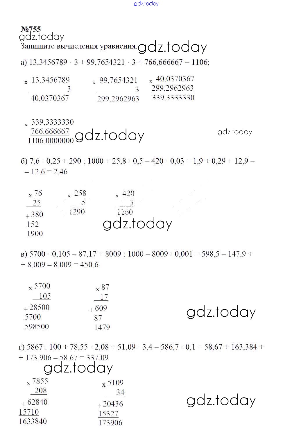 Ответы к Решение к упражнениям 755 Учебнику по Математике для 5 класса Зубарева, Мордкович Мнемозина 2015