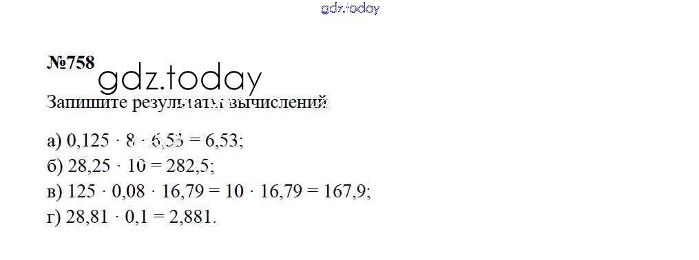 Ответы к Решение к упражнениям 758 Учебнику по Математике для 5 класса Зубарева, Мордкович Мнемозина 2015