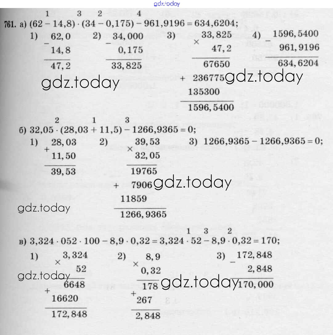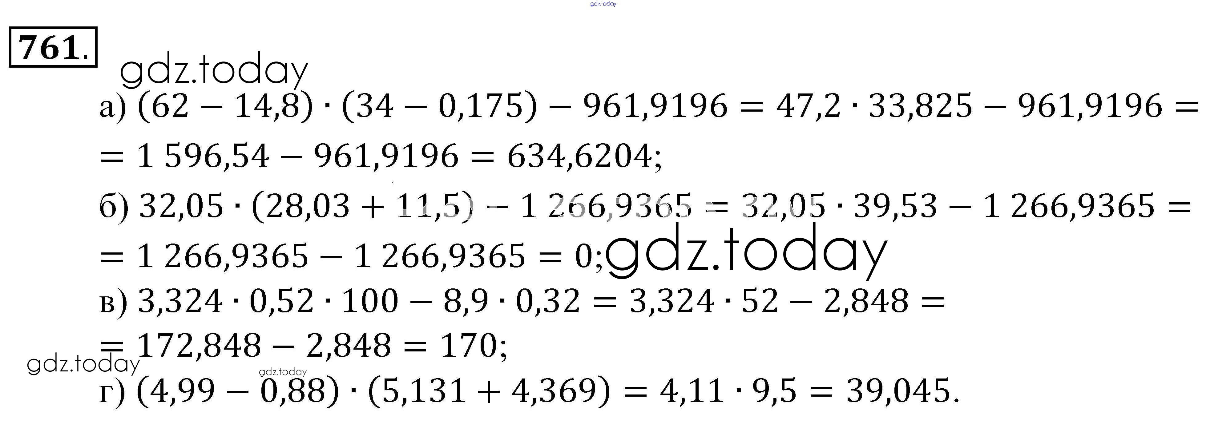 Ответы к Решение к упражнениям 761 Учебнику по Математике для 5 класса Зубарева, Мордкович Мнемозина 2015