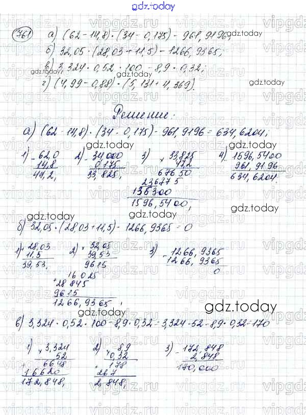 На страницах сайта gdz.today вы найдете учебный и вспомогательный материал, направленный на улучшения знаний школьной программы. ГДЗ - онлайн мир знаний Решение к упражнениям 761 Учебнику по Математике для 5 класса Зубарева, Мордкович Мнемозина 2015