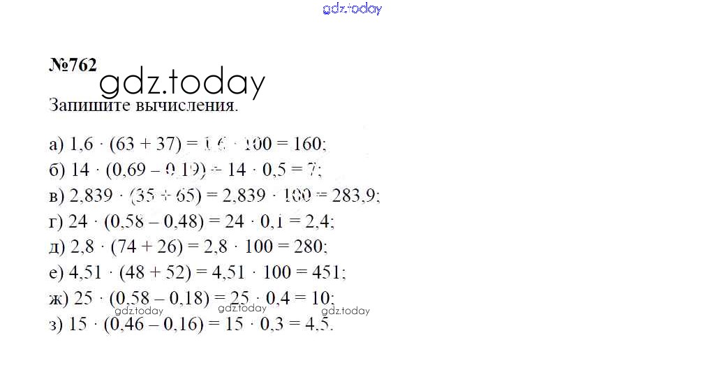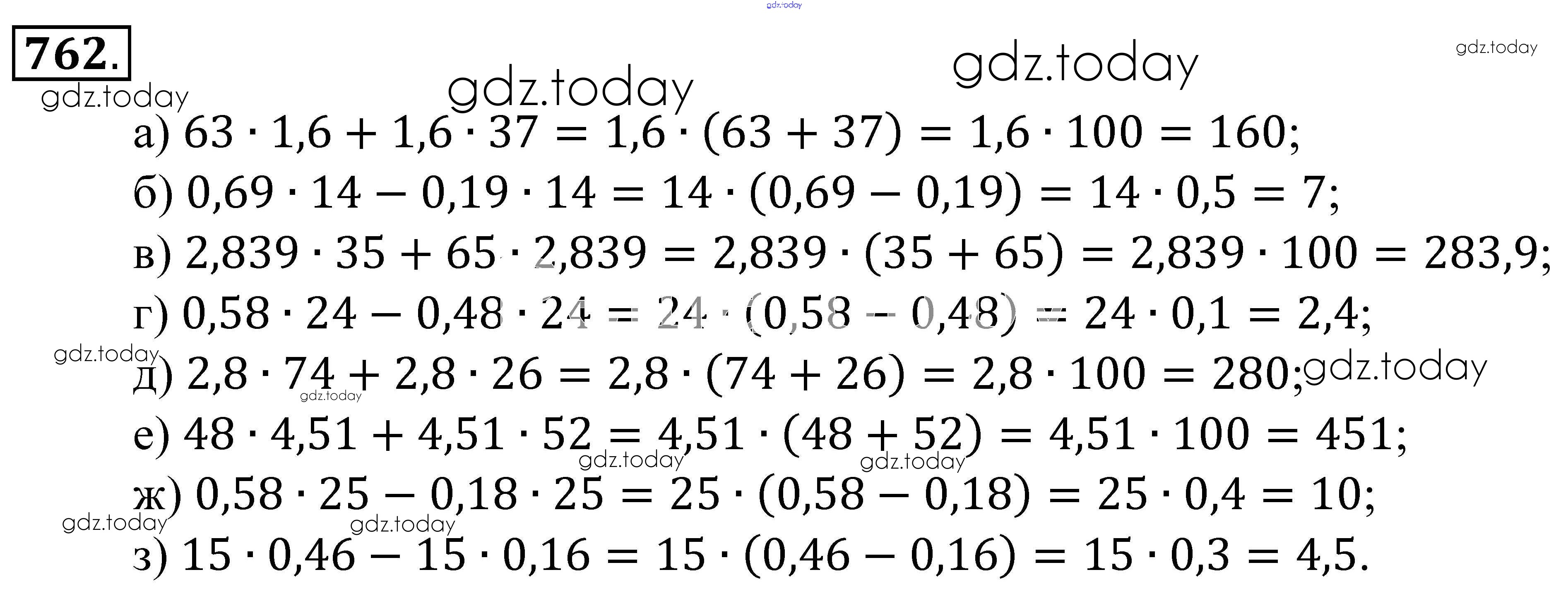 Ответы к Решение к упражнениям 762 Учебнику по Математике для 5 класса Зубарева, Мордкович Мнемозина 2015