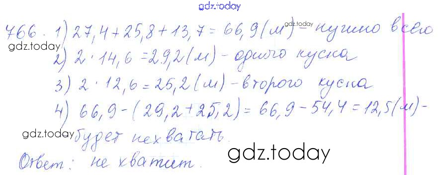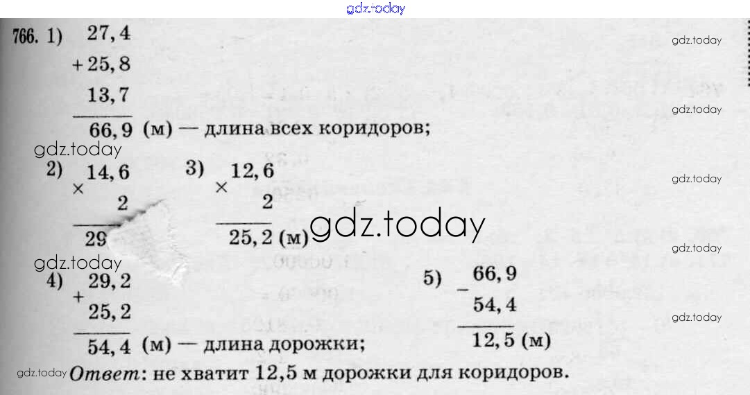 Ответы к Решение к упражнениям 766 Учебнику по Математике для 5 класса Зубарева, Мордкович Мнемозина 2015