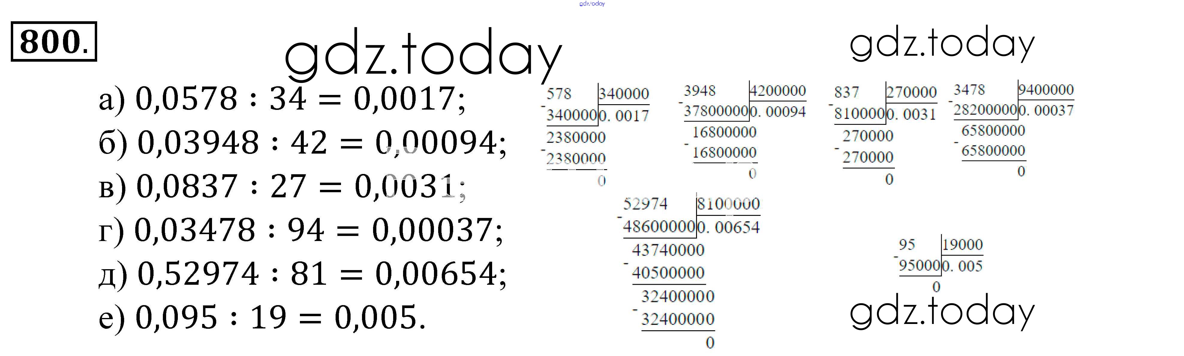 Ответы к Решение к упражнениям 800 Учебнику по Математике для 5 класса Зубарева, Мордкович Мнемозина 2015