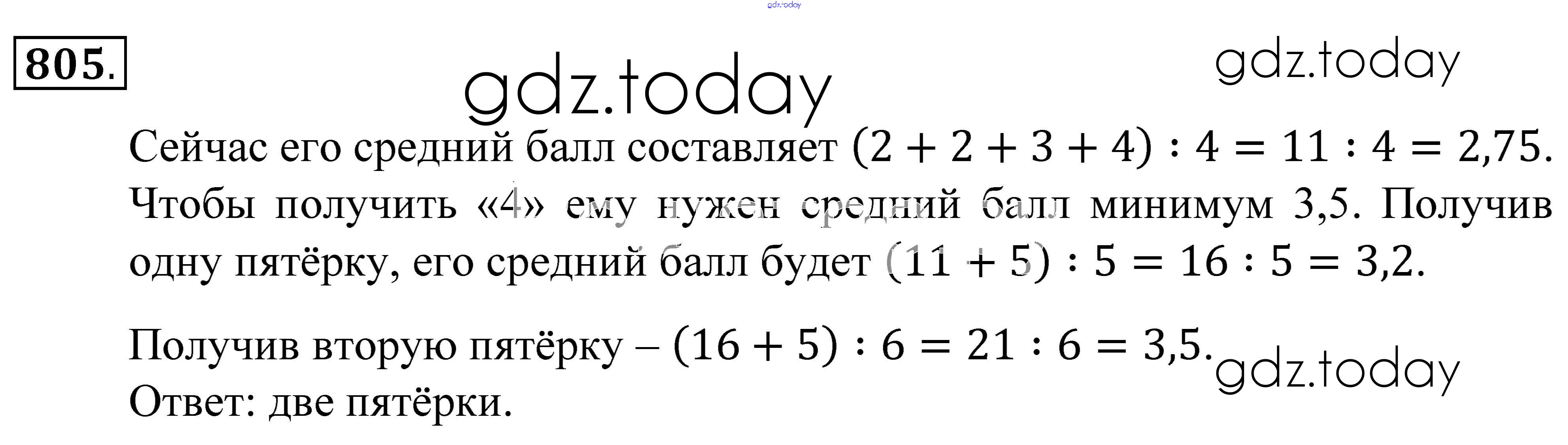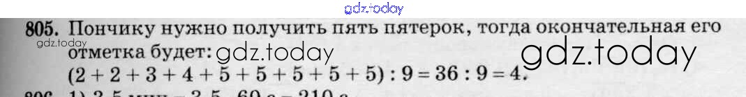 Ответы к Решение к упражнениям 805 Учебнику по Математике для 5 класса Зубарева, Мордкович Мнемозина 2015