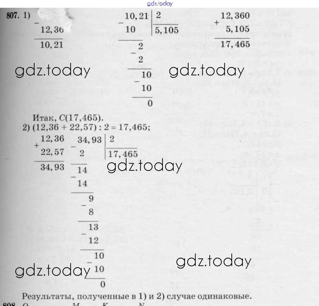 Ответы к Решение к упражнениям 807 Учебнику по Математике для 5 класса Зубарева, Мордкович Мнемозина 2015