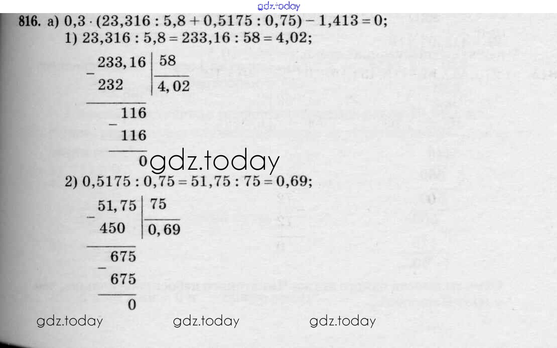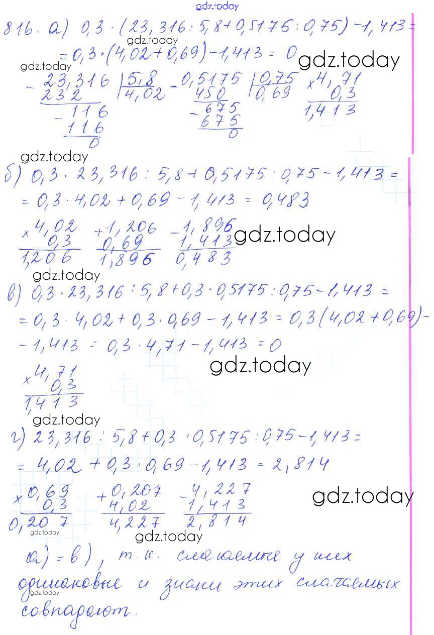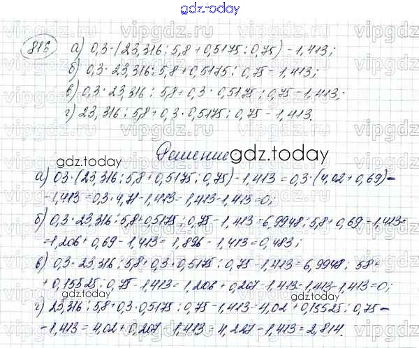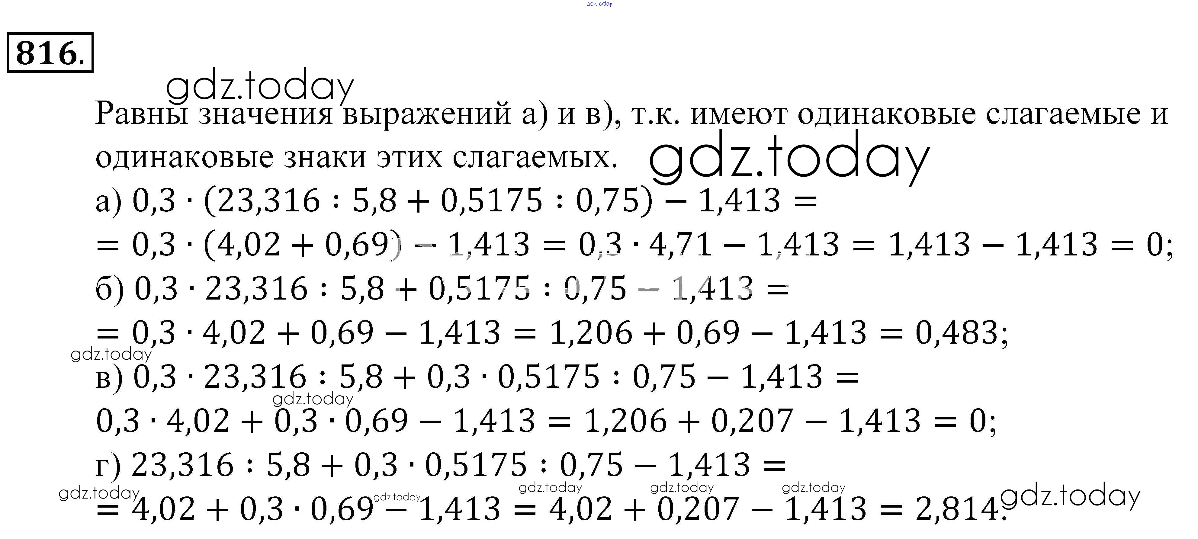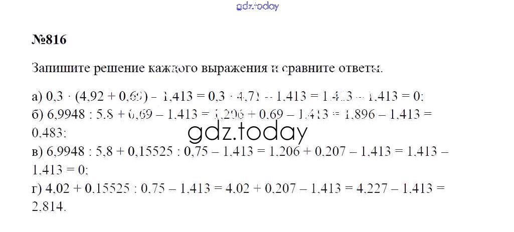 Ответы к Решение к упражнениям 816 Учебнику по Математике для 5 класса Зубарева, Мордкович Мнемозина 2015