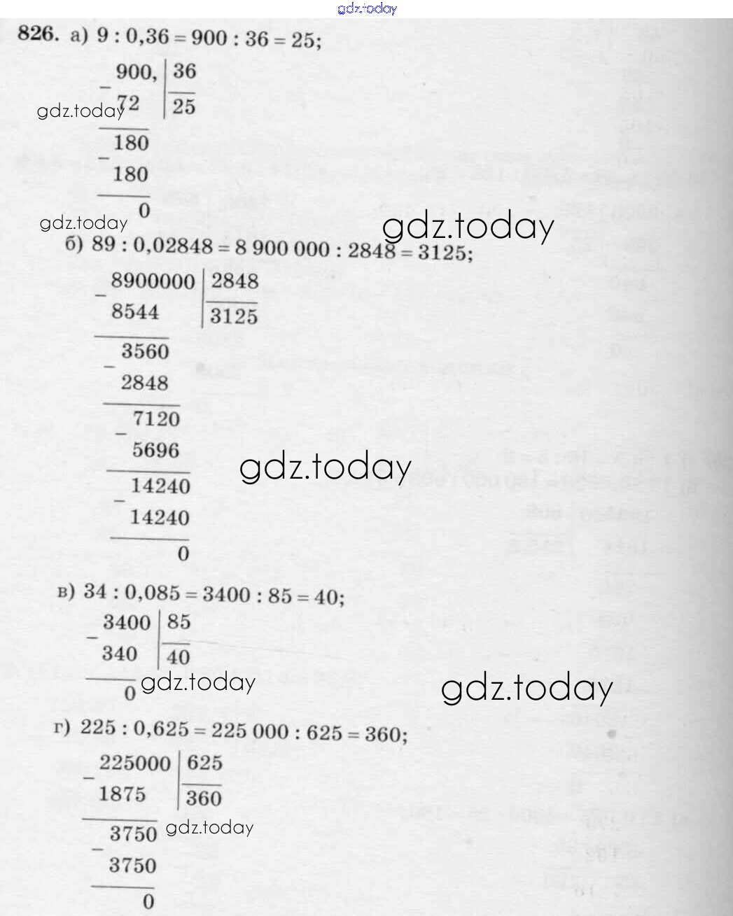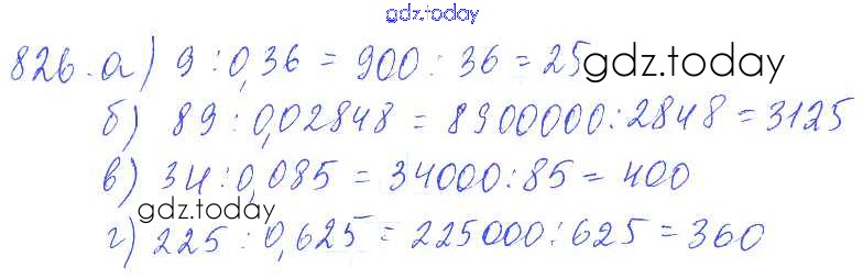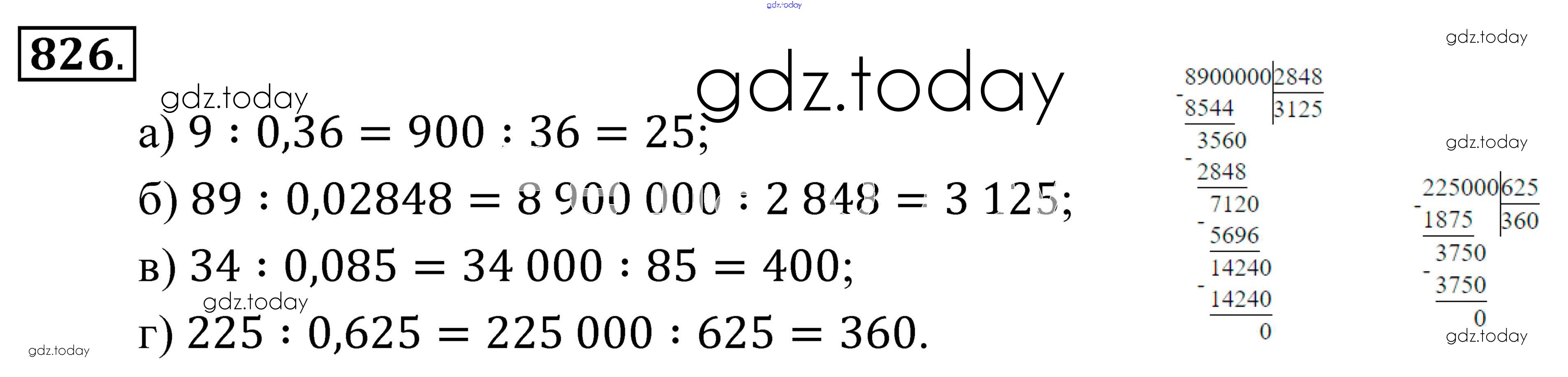 Ответы к Решение к упражнениям 826 Учебнику по Математике для 5 класса Зубарева, Мордкович Мнемозина 2015