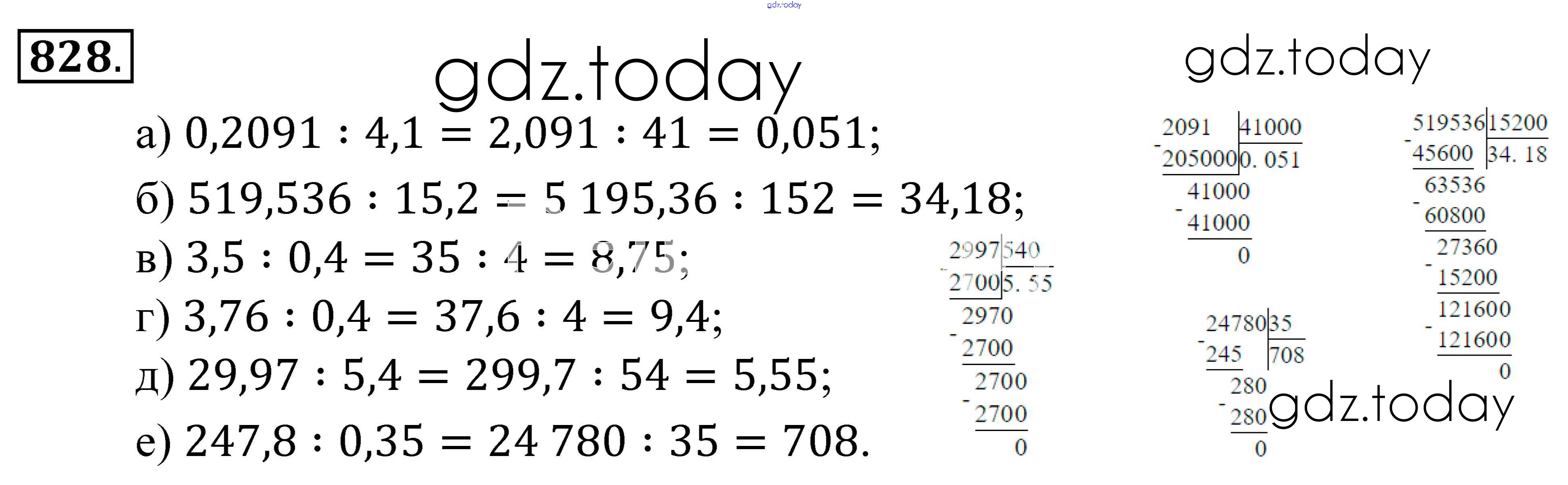 Ответы к Решение к упражнениям 828 Учебнику по Математике для 5 класса Зубарева, Мордкович Мнемозина 2015