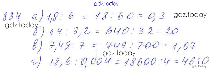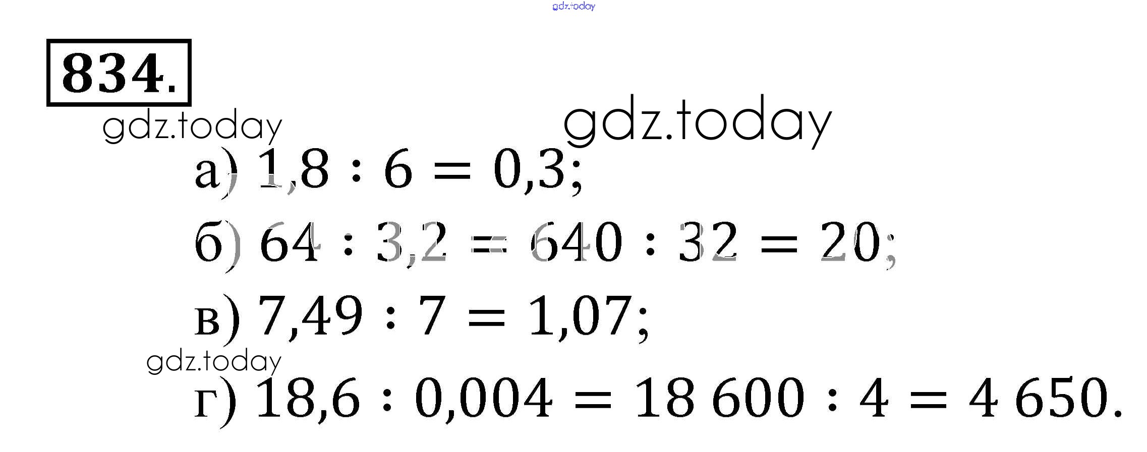 Ответы к Решение к упражнениям 834 Учебнику по Математике для 5 класса Зубарева, Мордкович Мнемозина 2015