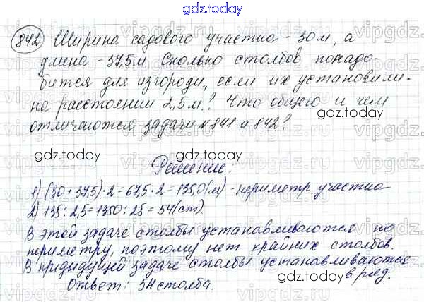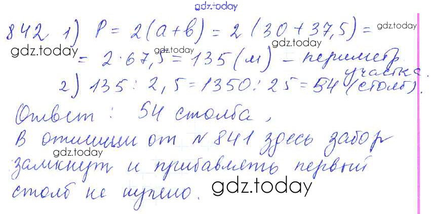 Ответы к Решение к упражнениям 842 Учебнику по Математике для 5 класса Зубарева, Мордкович Мнемозина 2015