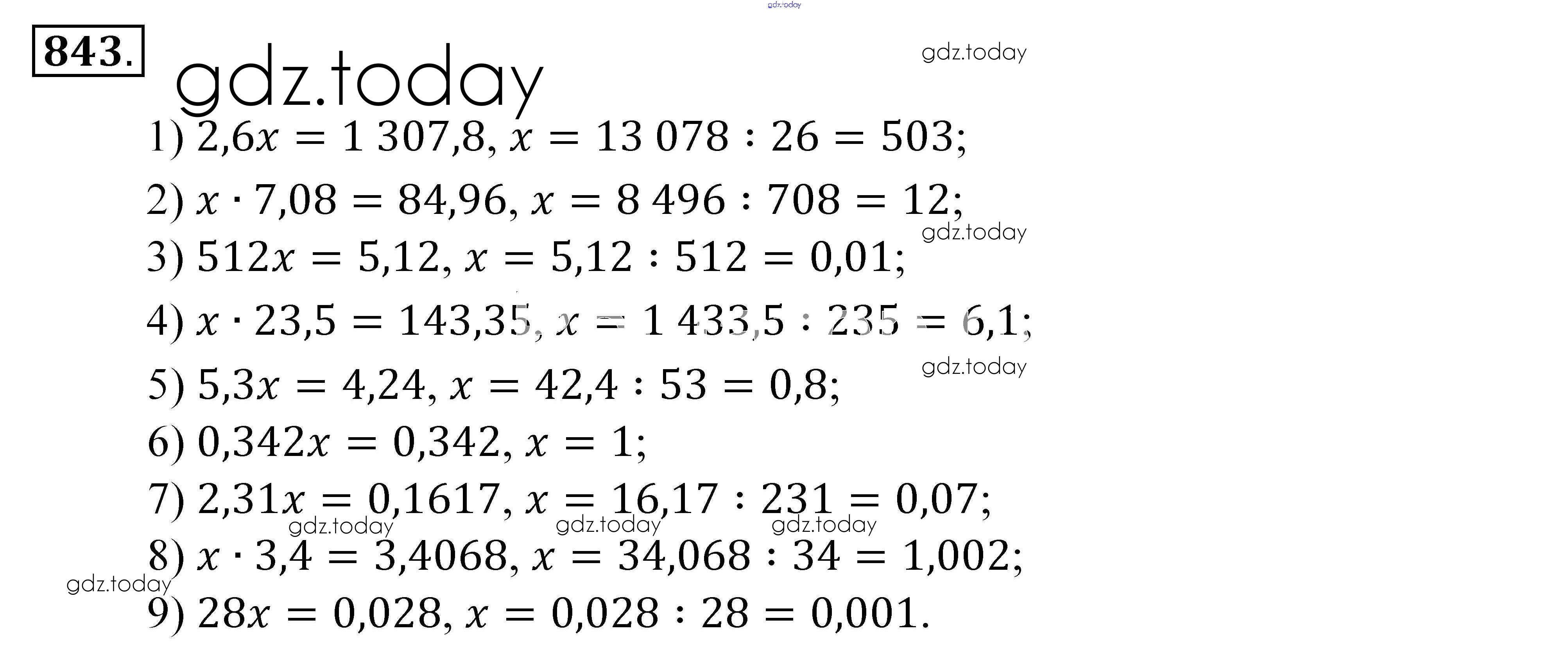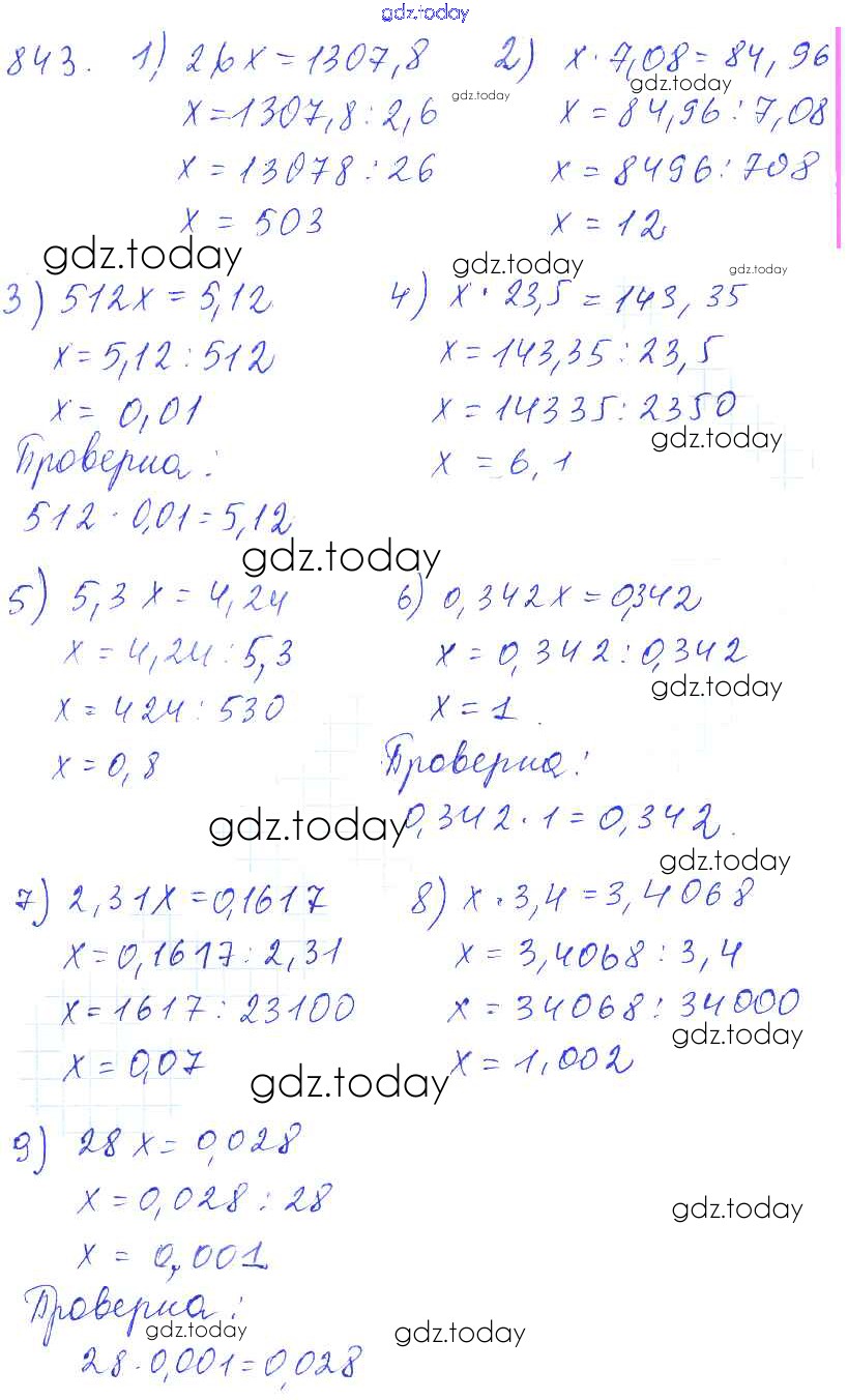 Ответы к Решение к упражнениям 843 Учебнику по Математике для 5 класса Зубарева, Мордкович Мнемозина 2015