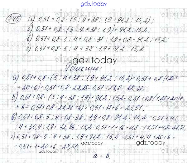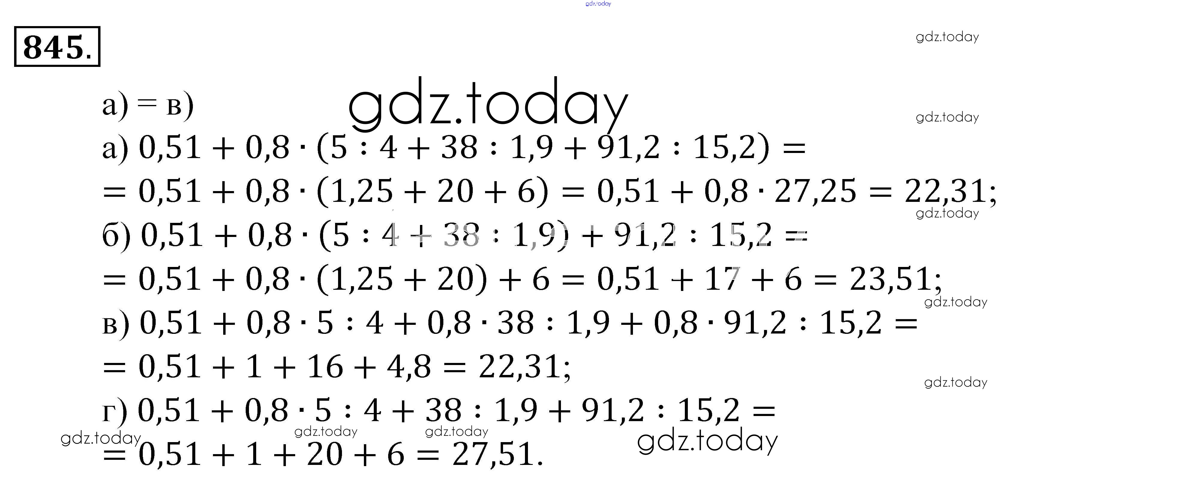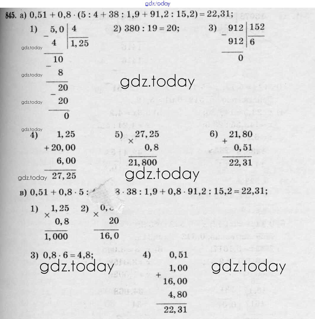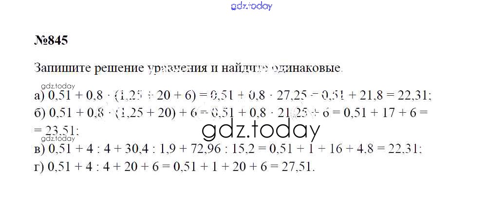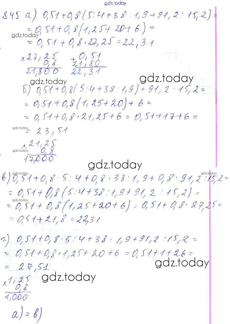 Ответы к Решение к упражнениям 845 Учебнику по Математике для 5 класса Зубарева, Мордкович Мнемозина 2015